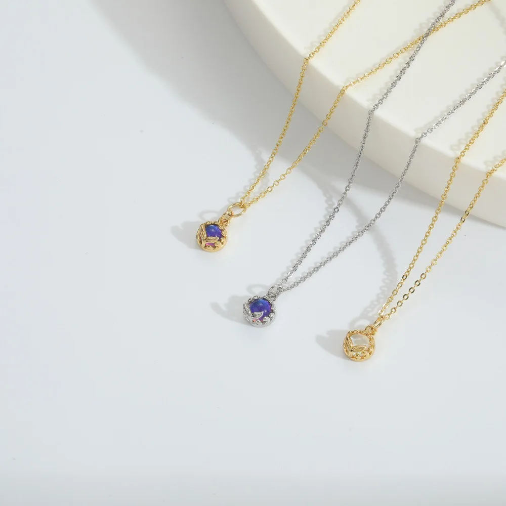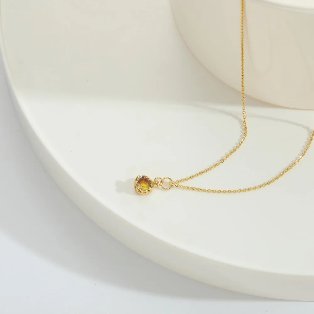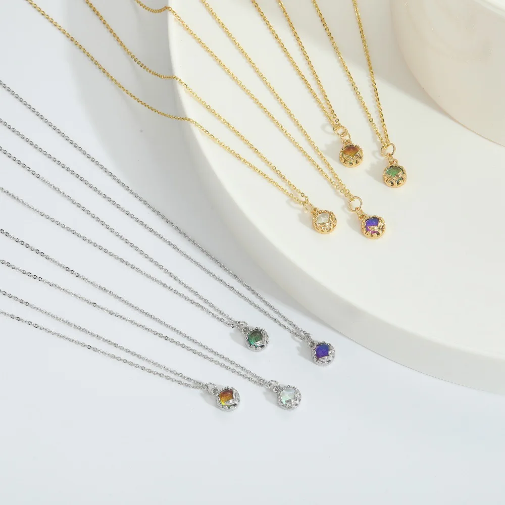 Hot Selling Copper Crystal Zircon Healing Natural Stone Necklace Row Stone Birthstone Necklace for Women