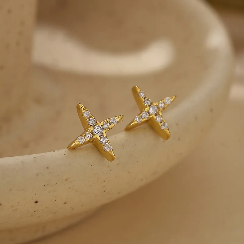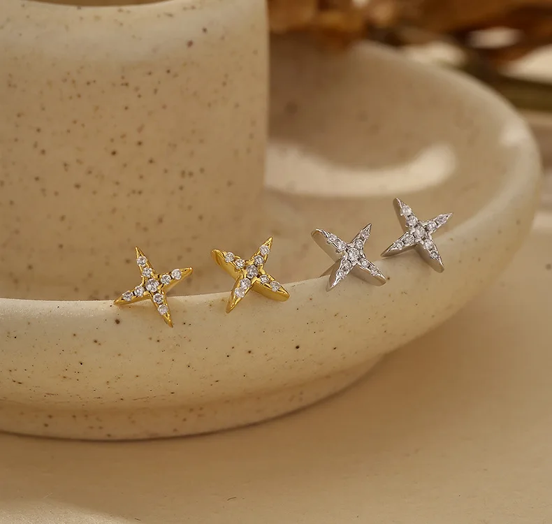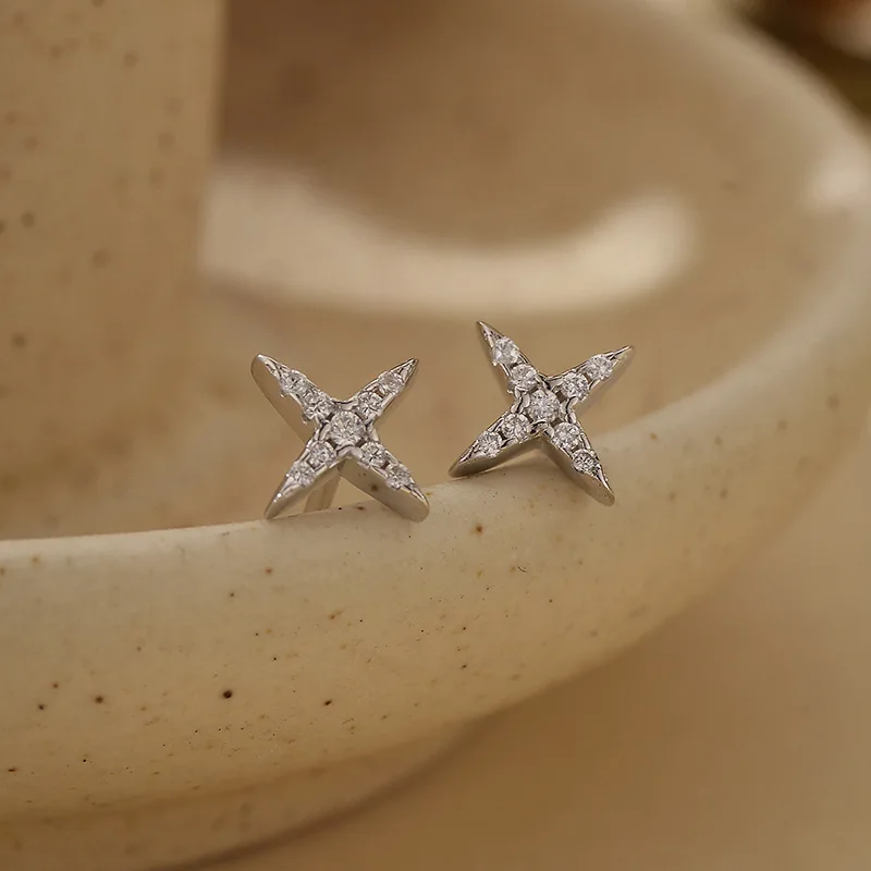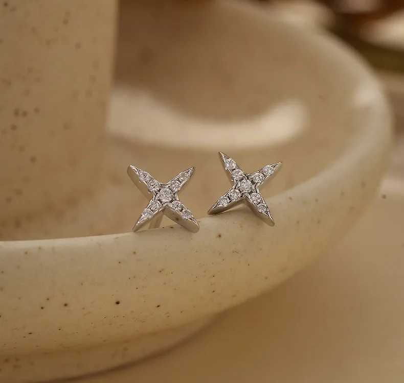 Popular Jewelry Star Silver Fashion Summer S925 Sterling Silver Cross Zircon Inlaid Stud Earrings For Girls Gift