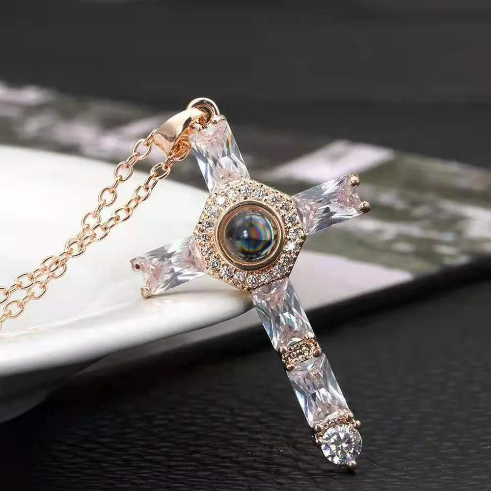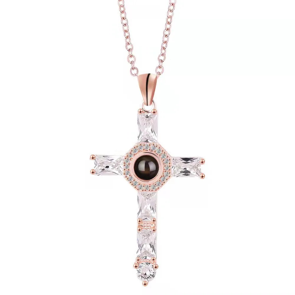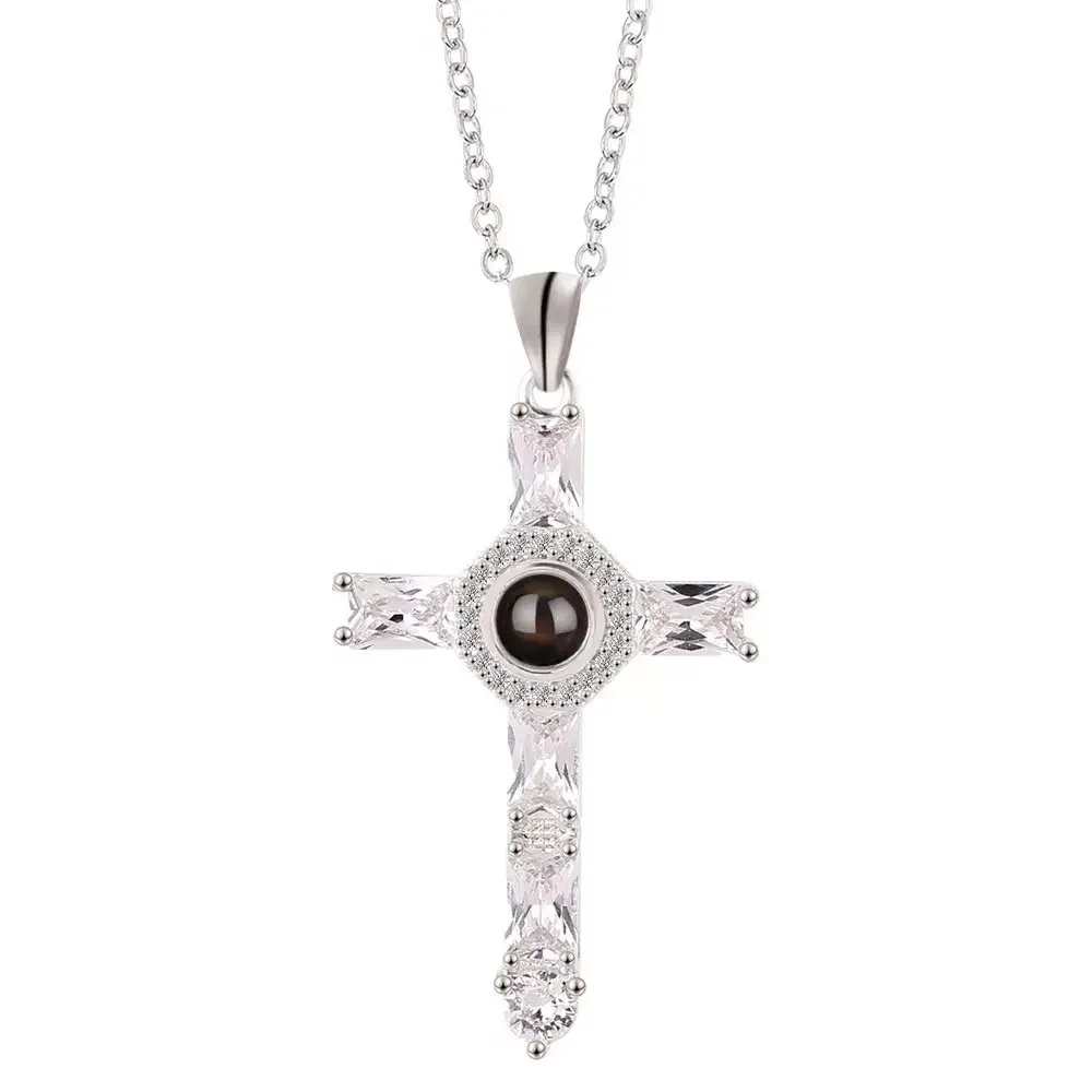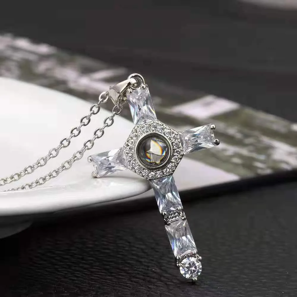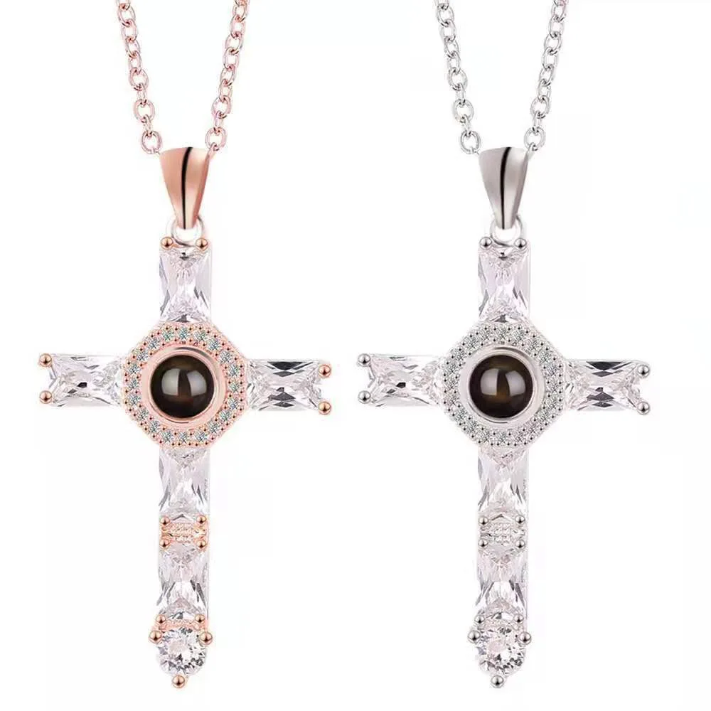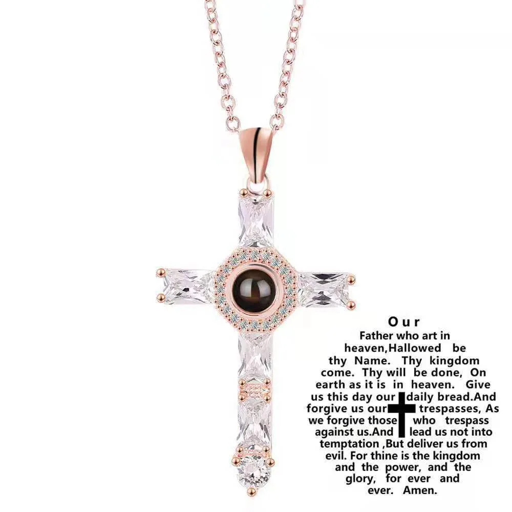 Unisex 3D Carved Crucifix Pendant Necklace with Laser Projection Religious Cross Pendant for Men Women Trendy Gothic Jewelry
