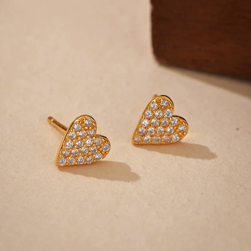 Wholesale S925 Sterling Silver Dainty Heart Stud Earrings for Women Minimalist 18K Gold Plated Mini Pave Zircon Love Earrings