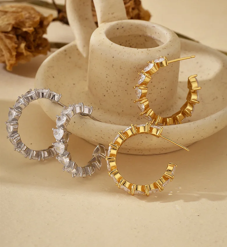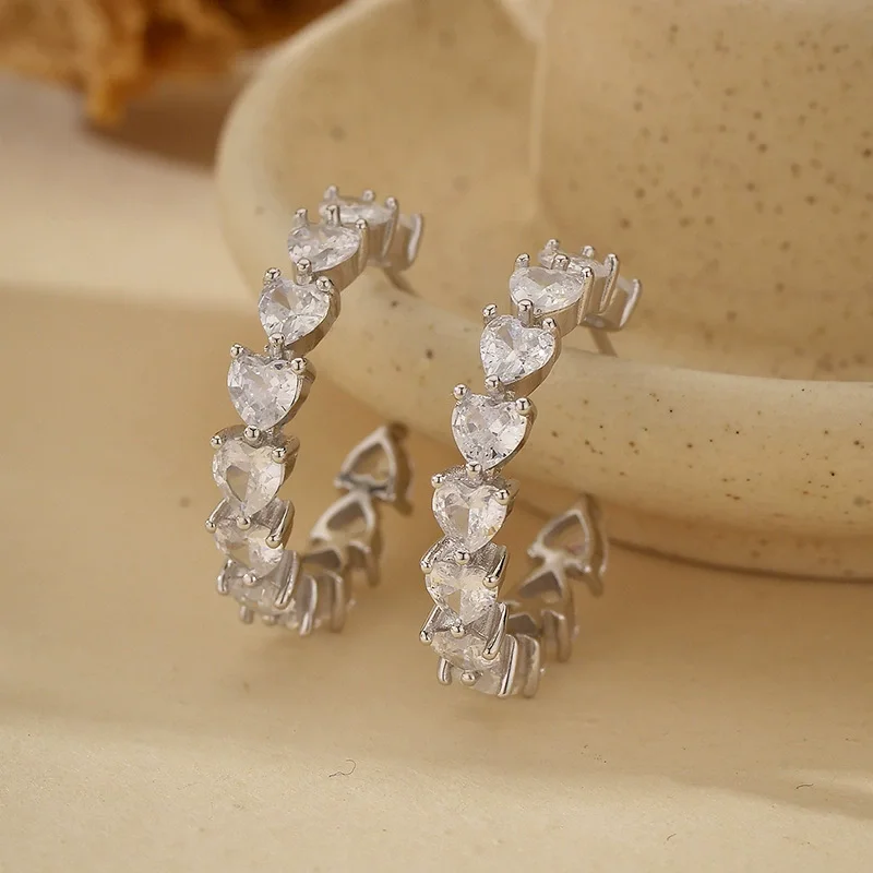 925 Silver Hoop Earrings 2025 Custom Elegant Curved Design with Heart Accents Lightweight Hypoallergenic Everyday Jewelry