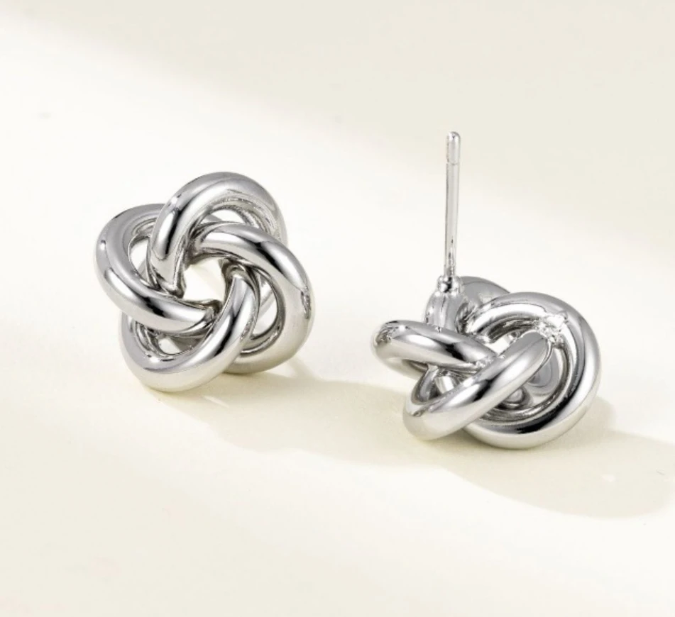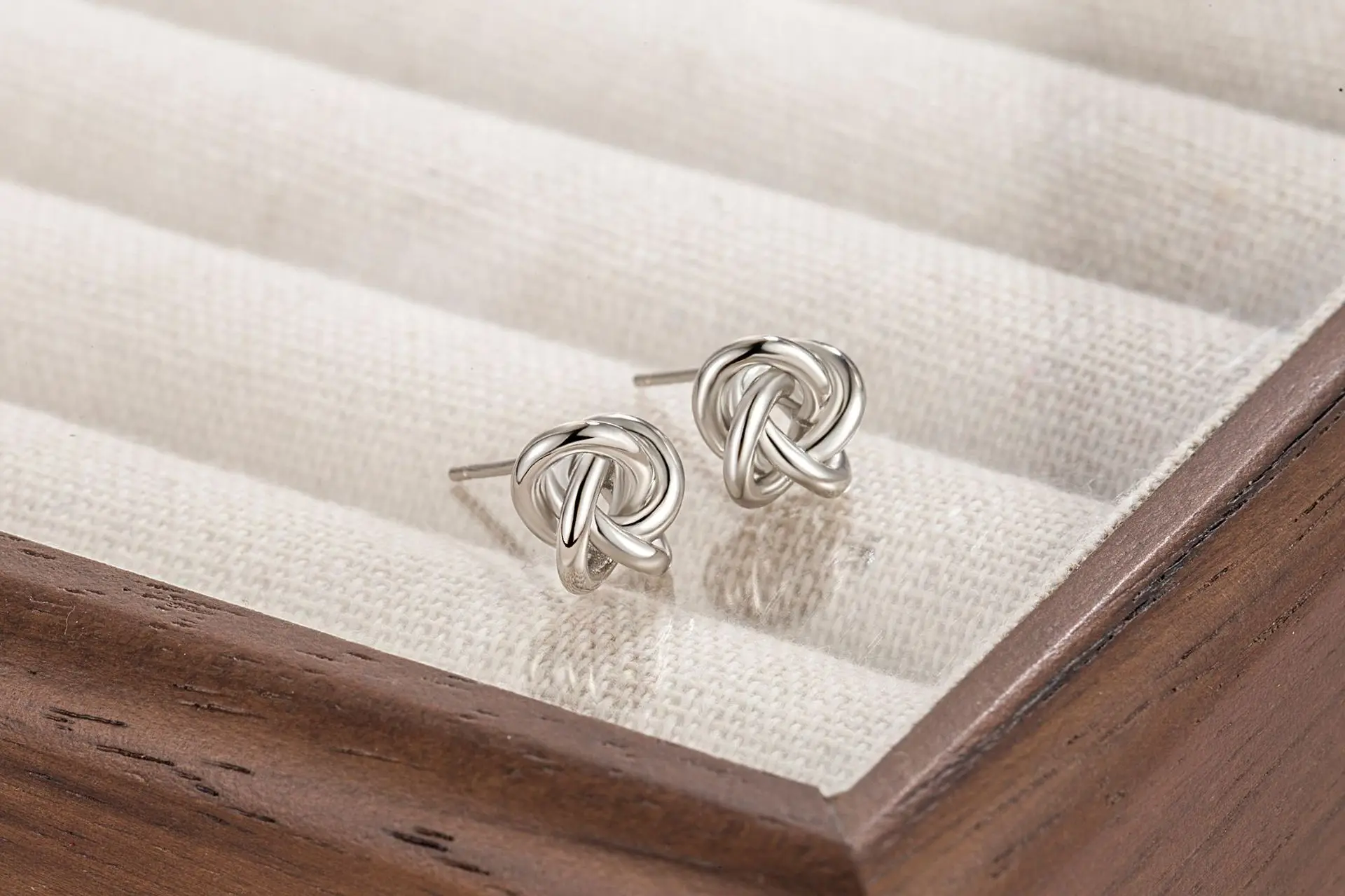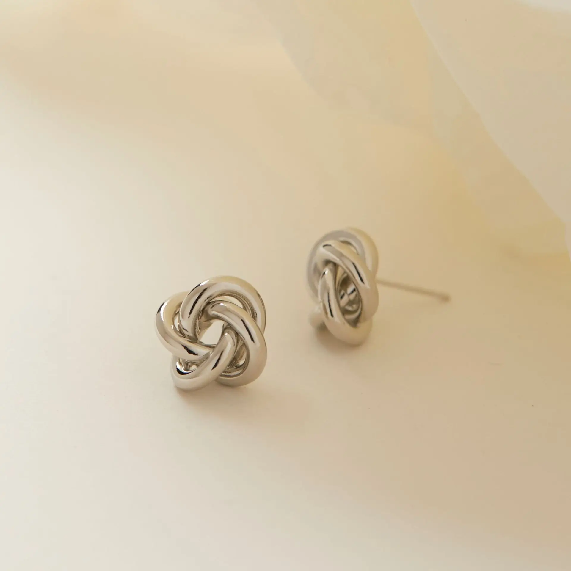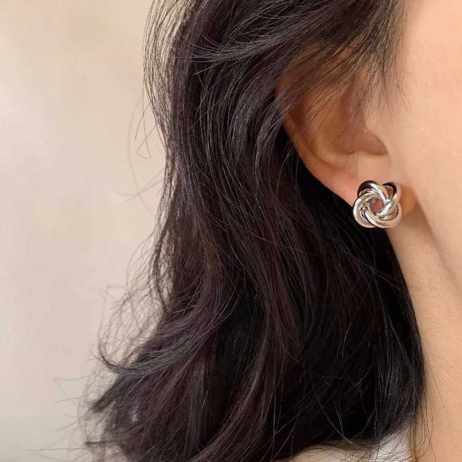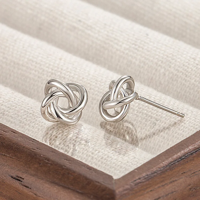 High Quality Irregular Geometric Hollow Out Stud Earrings Vintages Twisted Weaving Round Silver Earings for Valentines Day Gift
