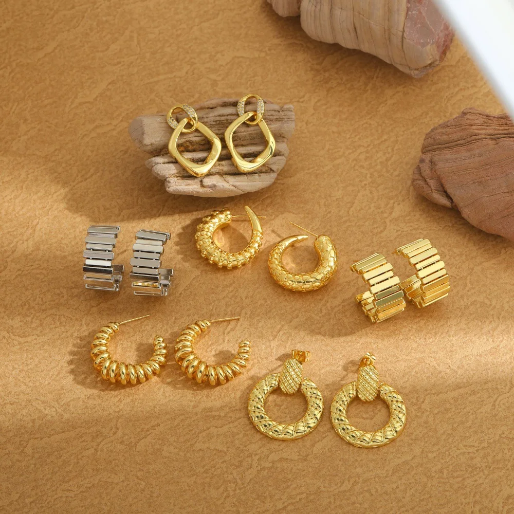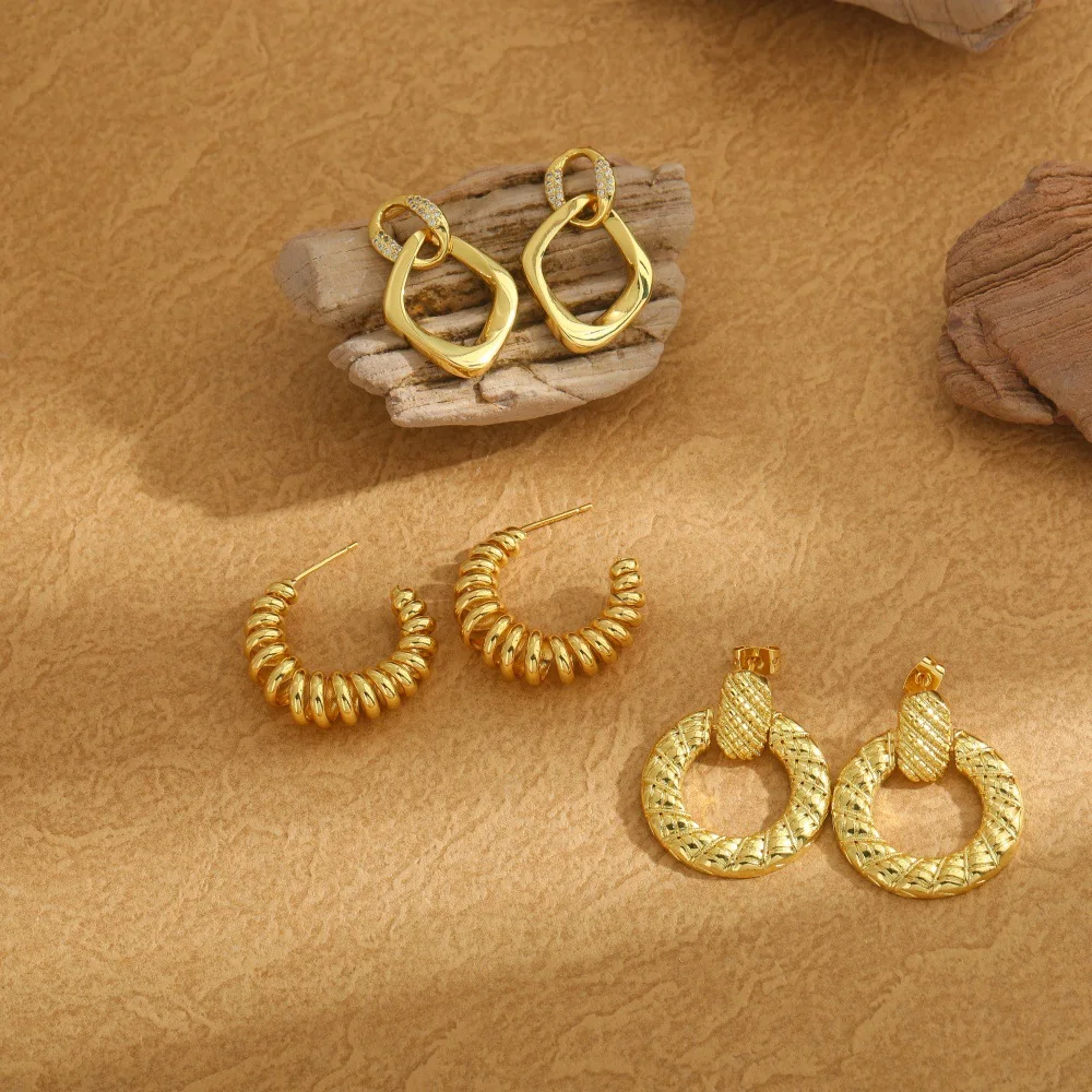 Copper Geometric U-shaped Gold Plated Earrings Octopus Inspired Design Statement Jewelry Women