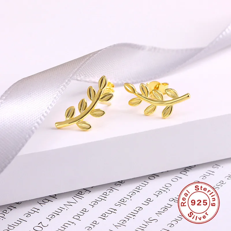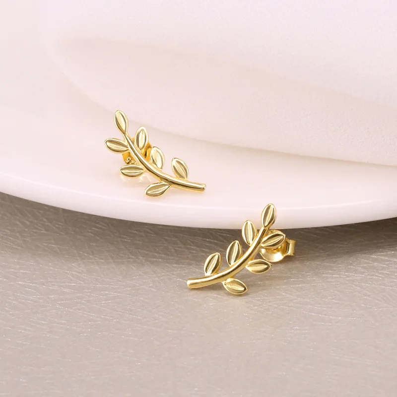 Fashion High Quality 925 Sterling Silver Leaf Earring for Women INS Style Personalized Gold Plated Climber Earring Jewelry