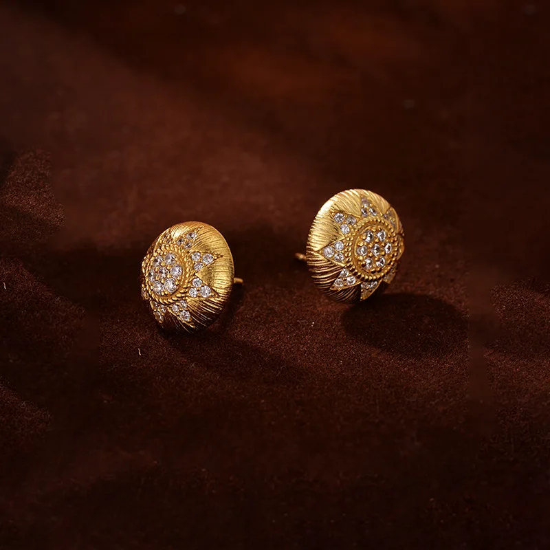 925 Sterling Silver 18k Plated Statement Earrings Sunflower Geometric Zircon Stud Earrings Women's Jewelry Gift for Wholesale