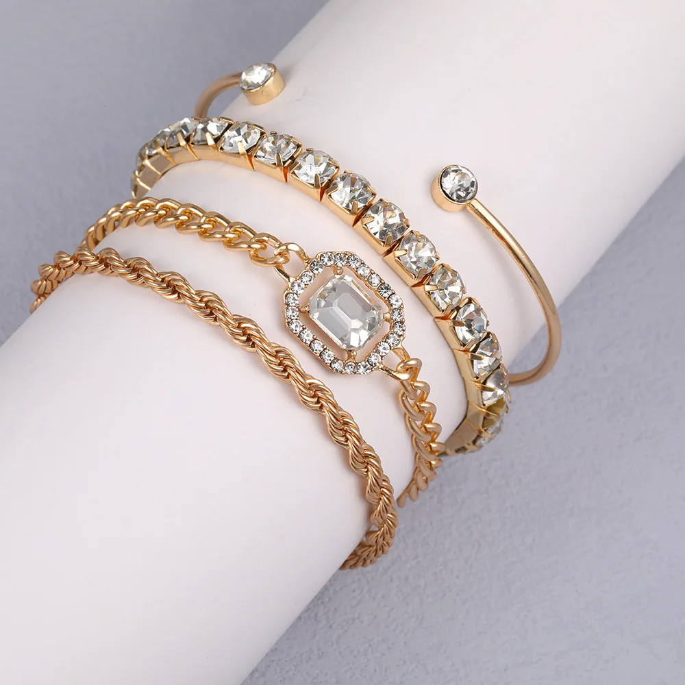 Luxury Women's Crystal Bracelet Set High Quality Gold Color Jewelry with Rhinestone and Zircon Multiple Styles