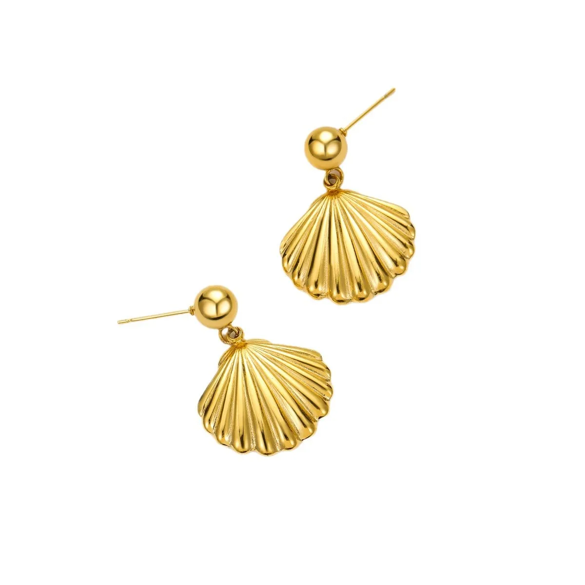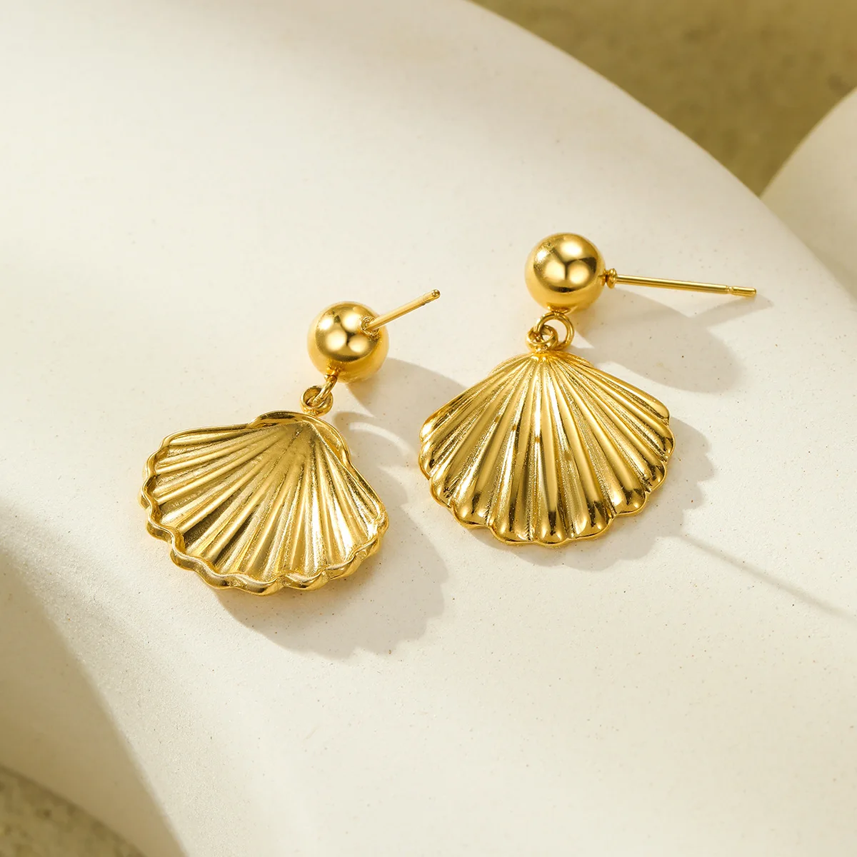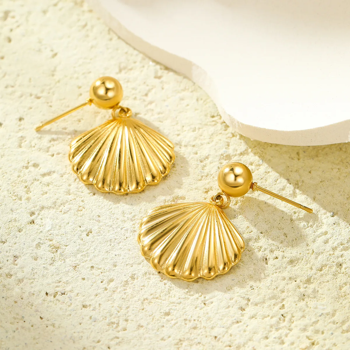 18K Gold Plated Stainless Steel Shell Earrings Hypoallergenic Beach Jewelry Dainty Stud Drop Ball Earrings for Women