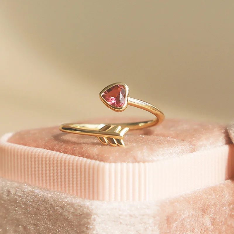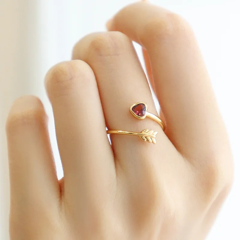 Minimalist Gold Tourmaline Heart Adjustable Ring Dainty Copper Zirconia Gold Valentine Rings Gift for Girl