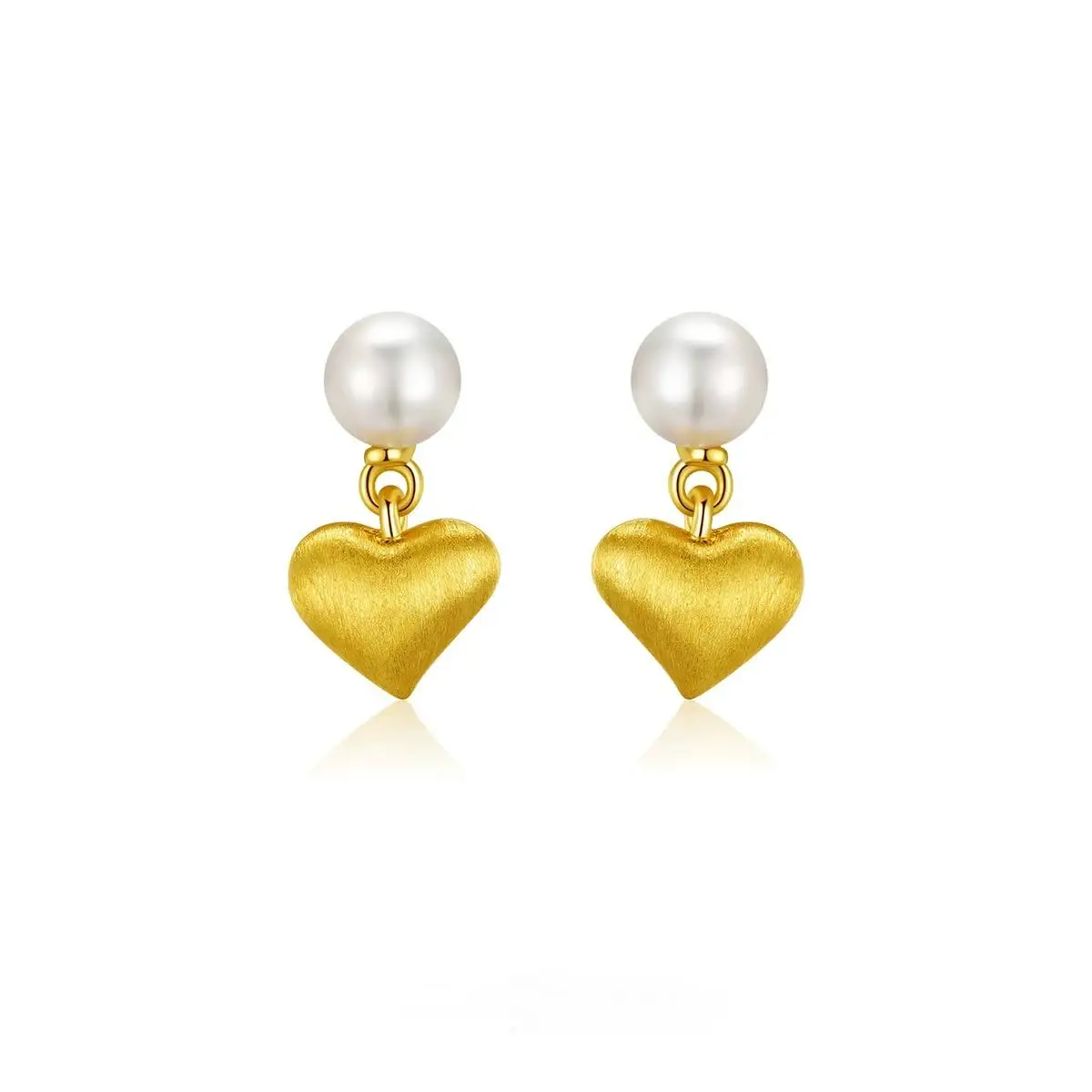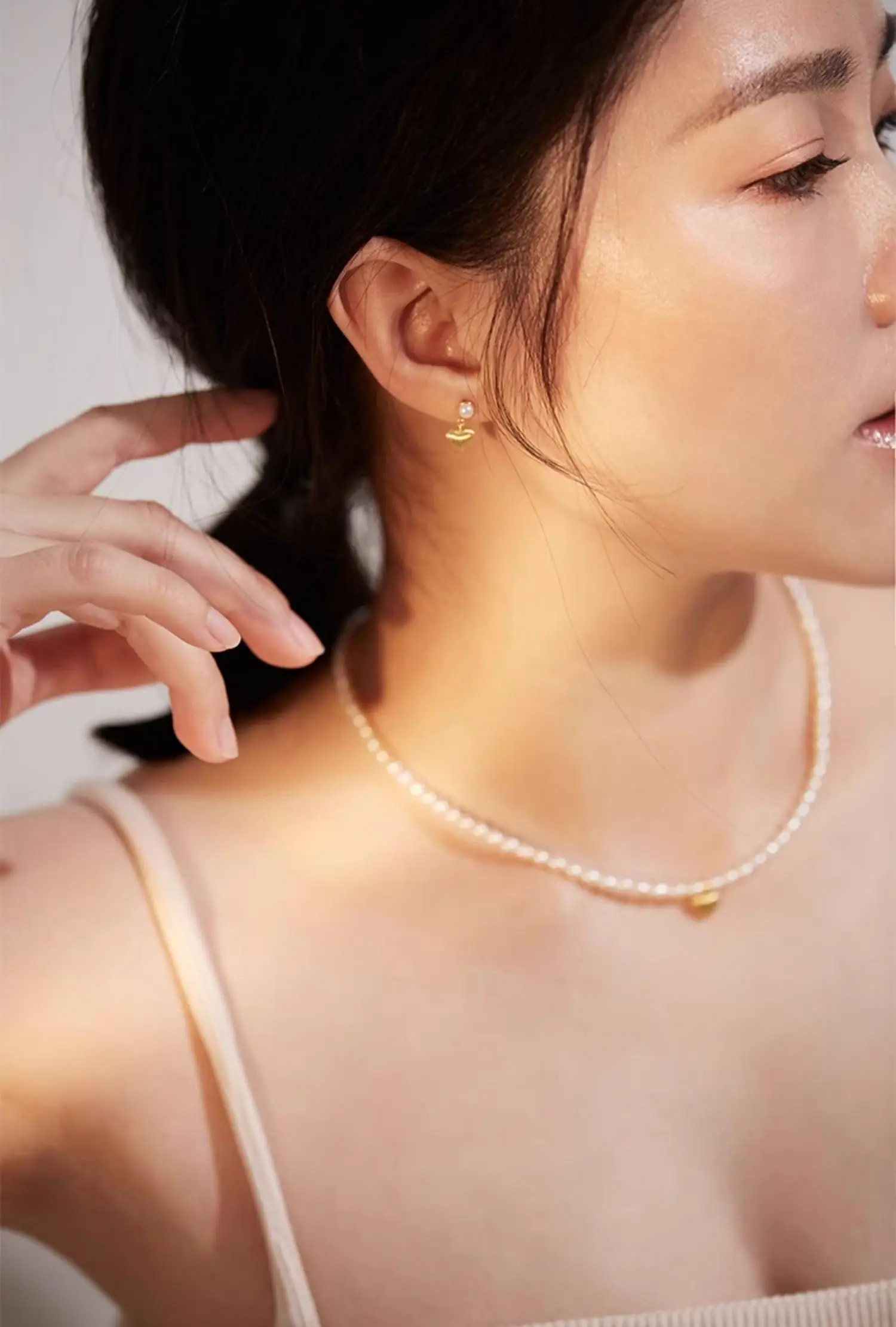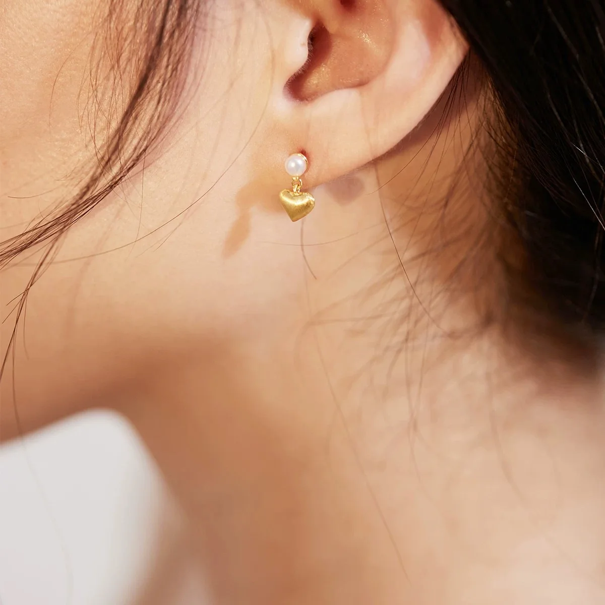 Valentine Day Gift 2025 love Pearl Necklace Heart Dangle Pearl Earrings Freshwater Real Pearl Jewelry Set for Women