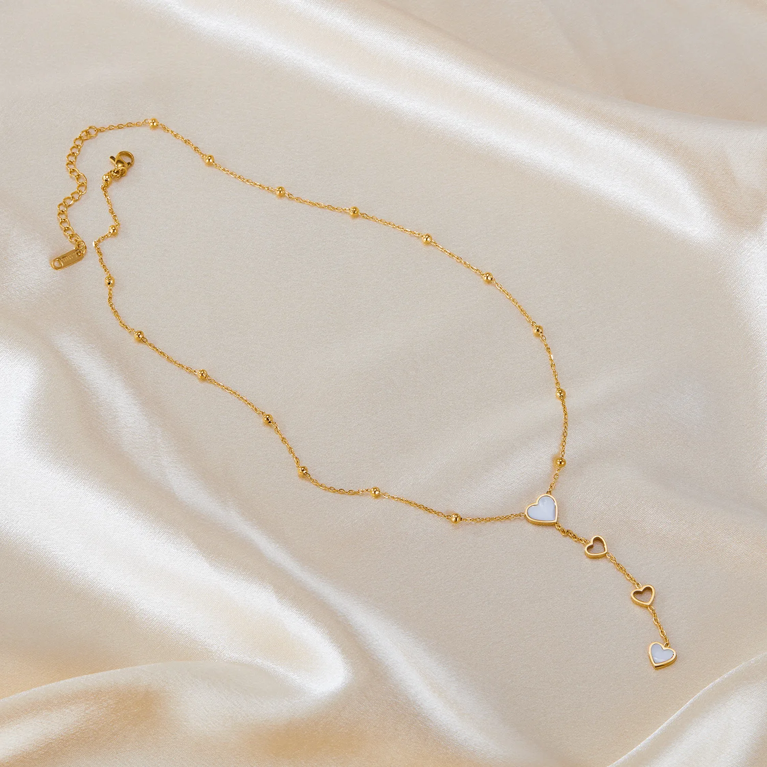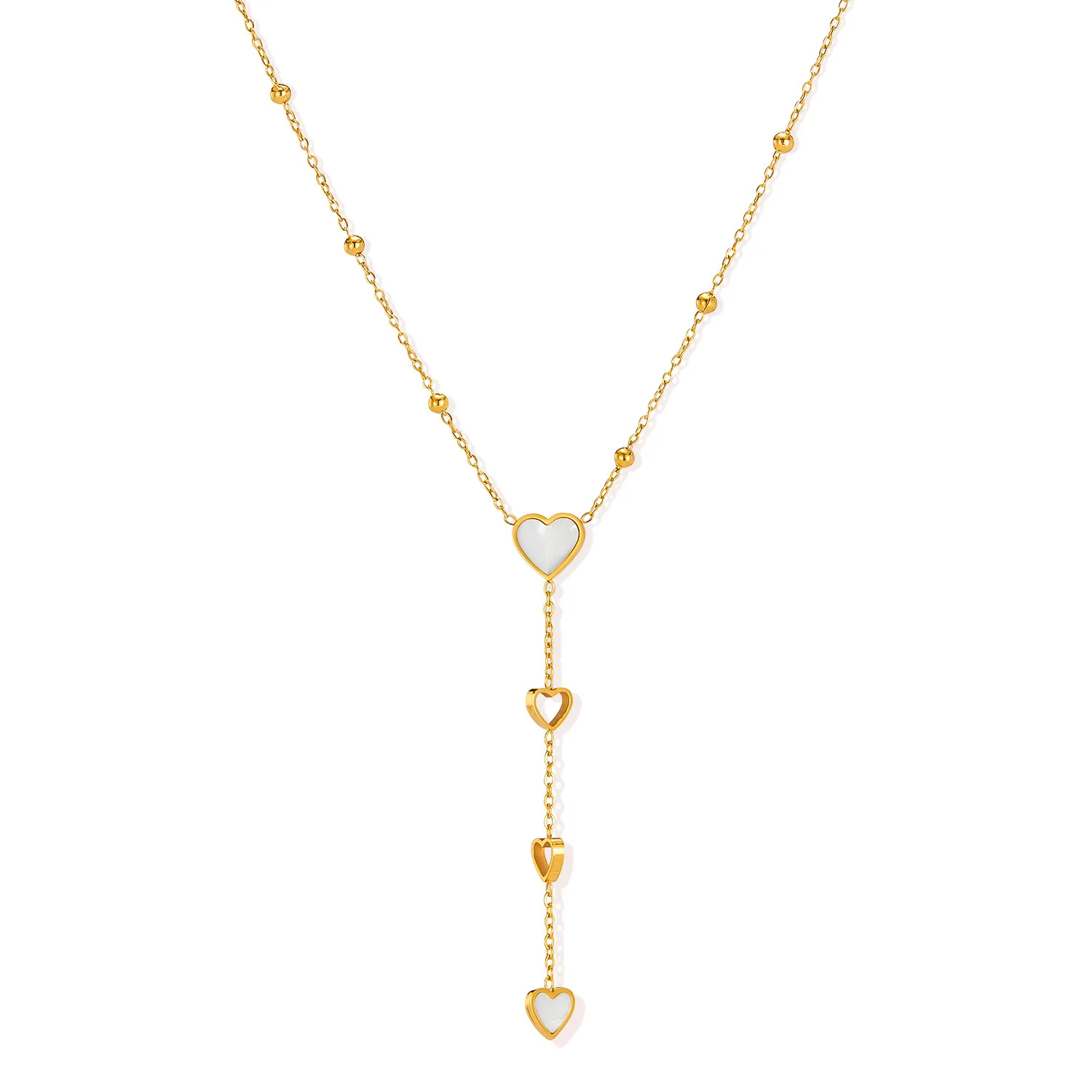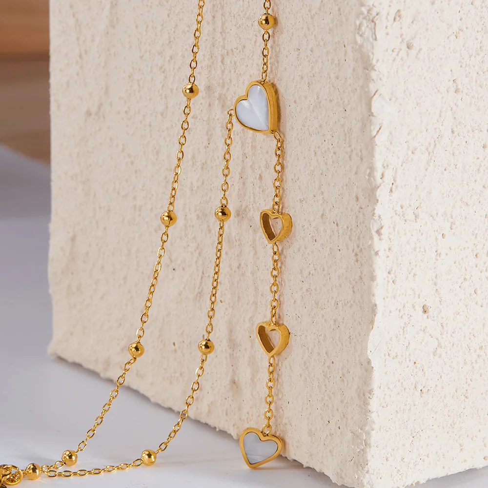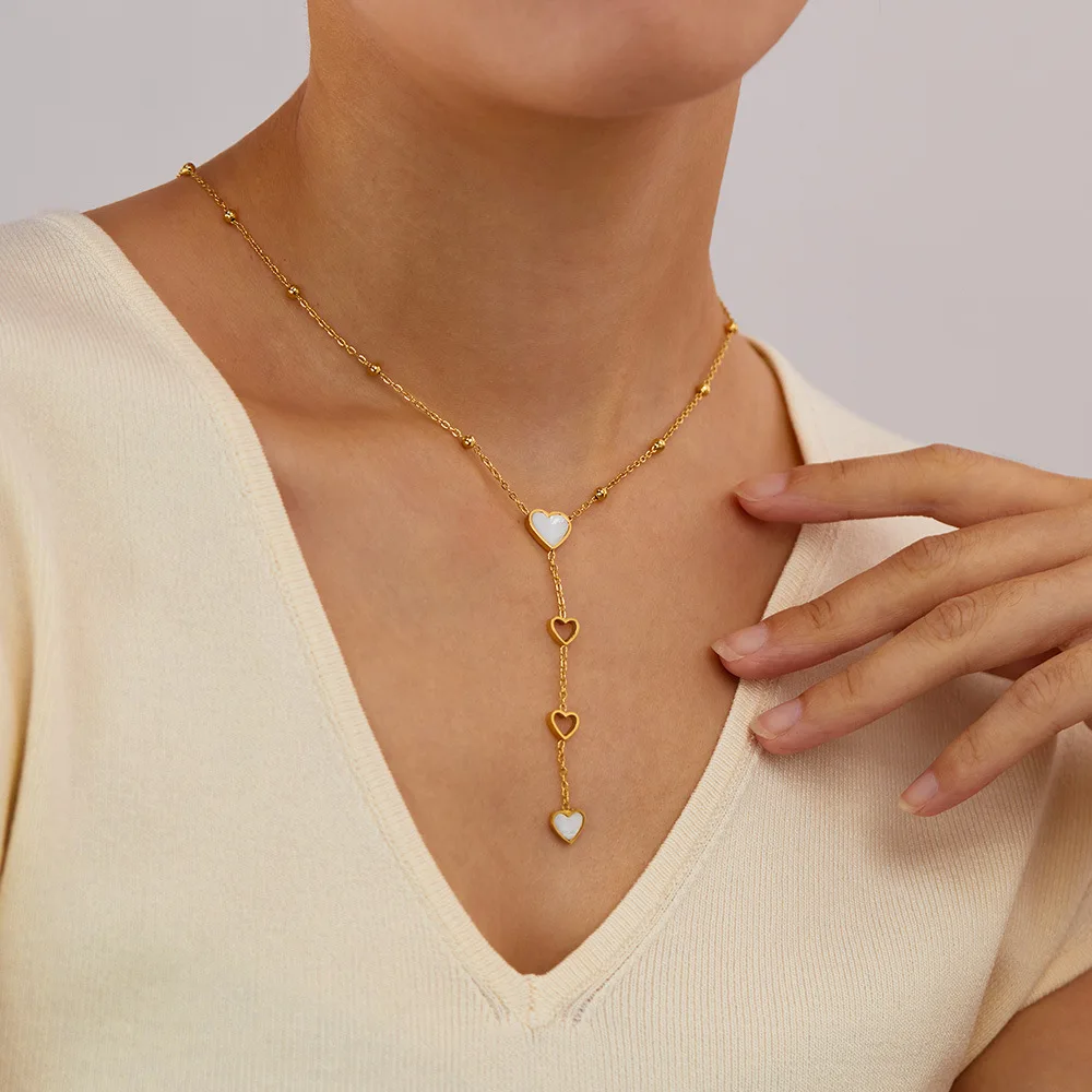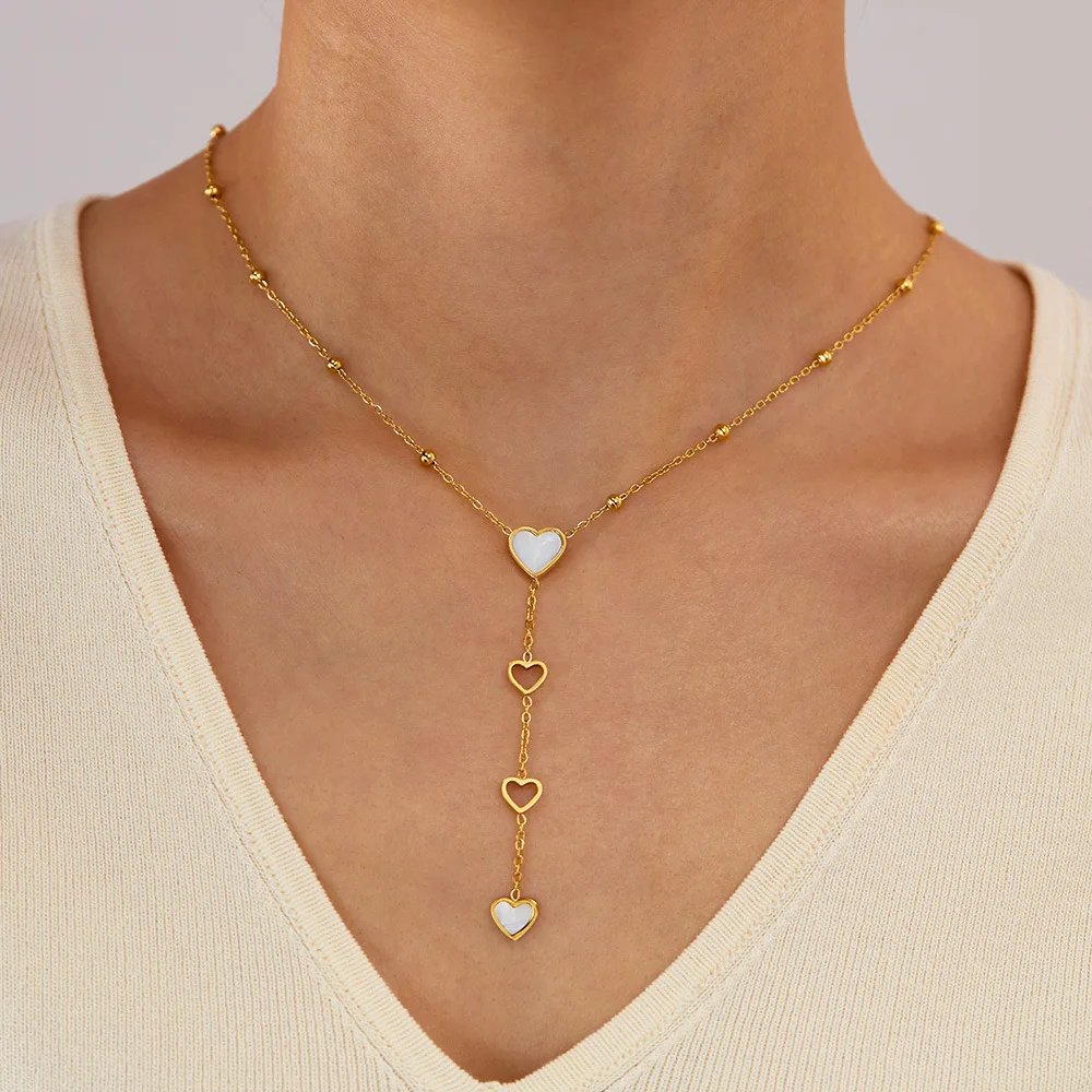 High Quality White Heart Hollow Tassel Shell Necklace Gold Plated Beads Love Long Pendant Necklace for Valentine Day Gift 2025