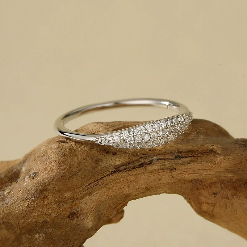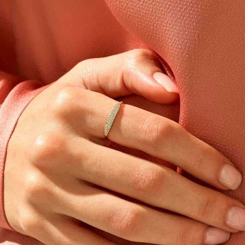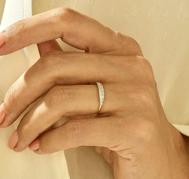 Wholesale Fashion 18K Gold Plated Cubic Zirconia Paved Slim Ring 925 Sterling Silver Rings For Women