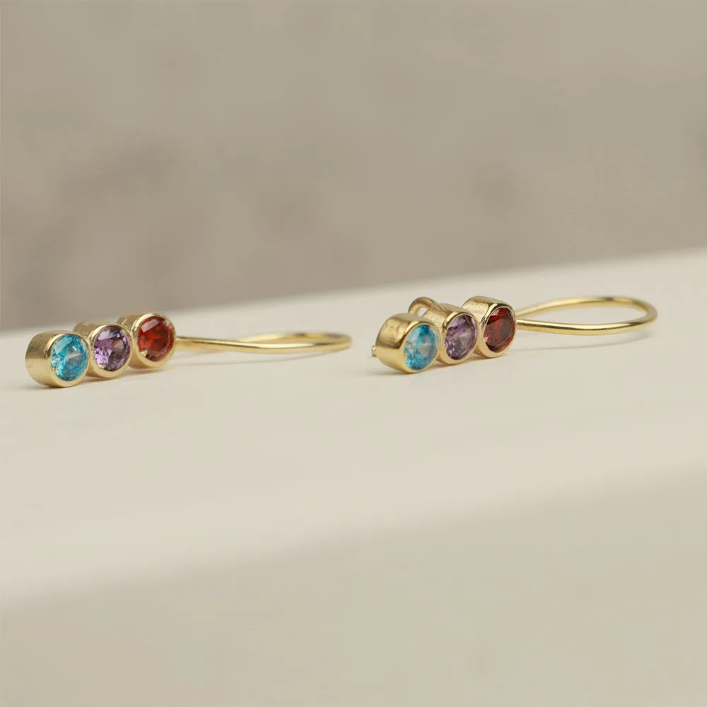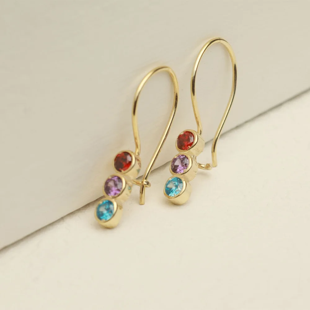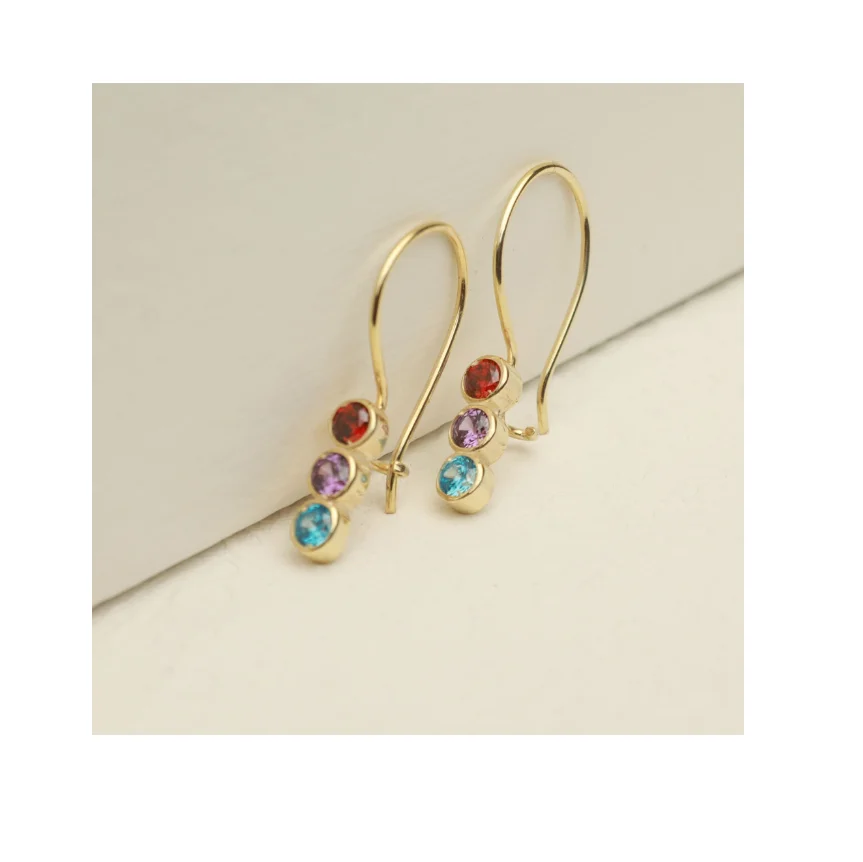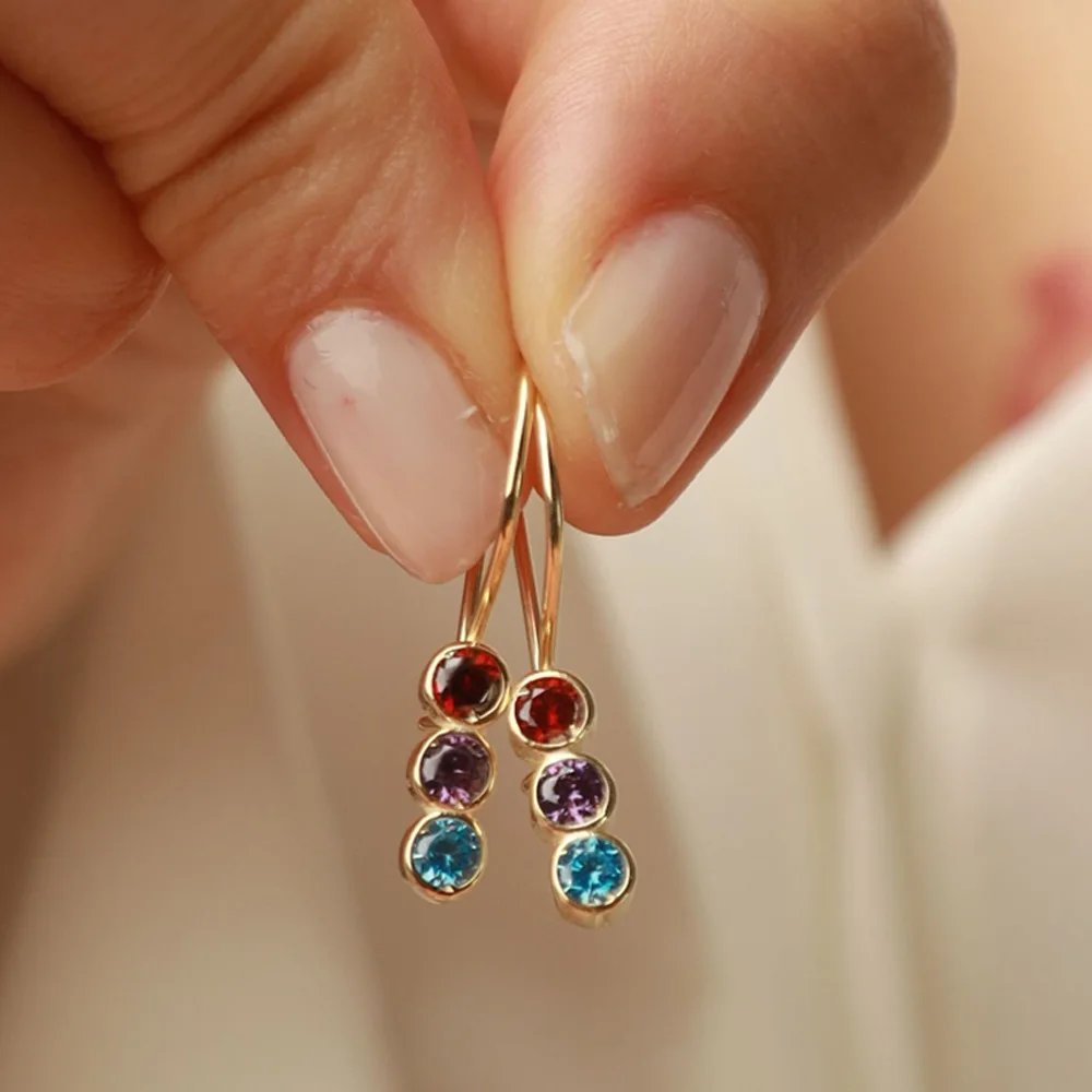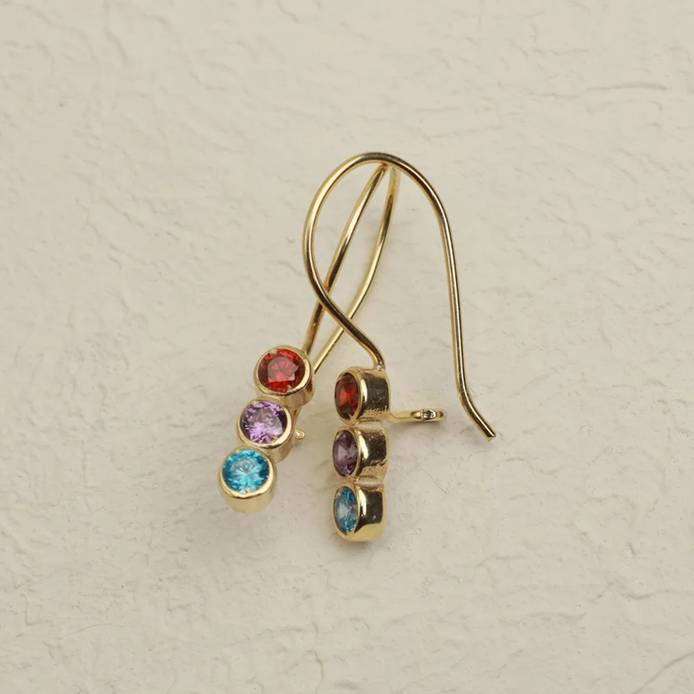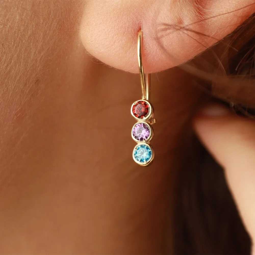 Hot Selling 18K Gold-Plated Geometric Shaped Earrings Cute Mix Color Zircon Round Exquisite Tassel Earrings Pendant for Lady