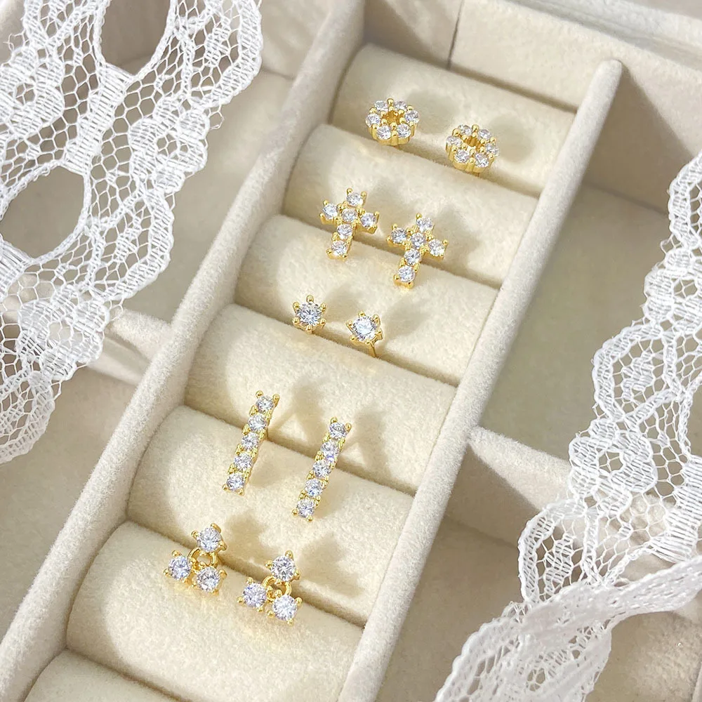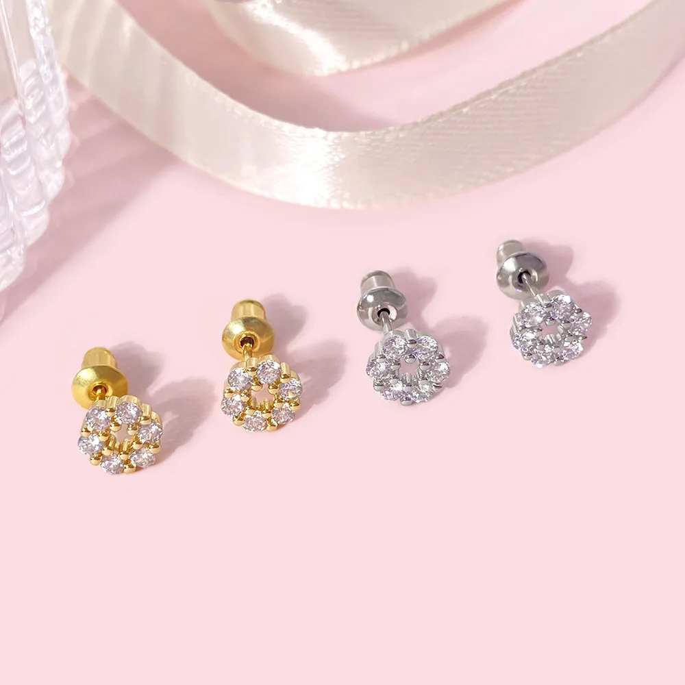 High-quality Stainless Steel Gold Plated Studs Round Zirconia Showcase Individuality Fashionable Women's Accessories