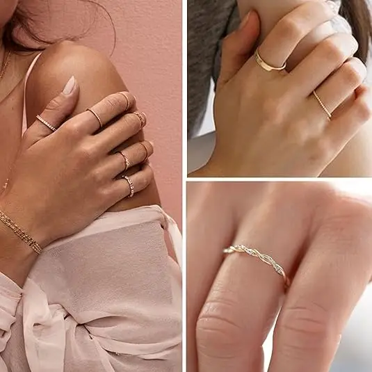2024 Newest Gold Rings for Women Non Tarnish Gold Plated Stacking Thumb Ring Set Women's Finger Ring Sets