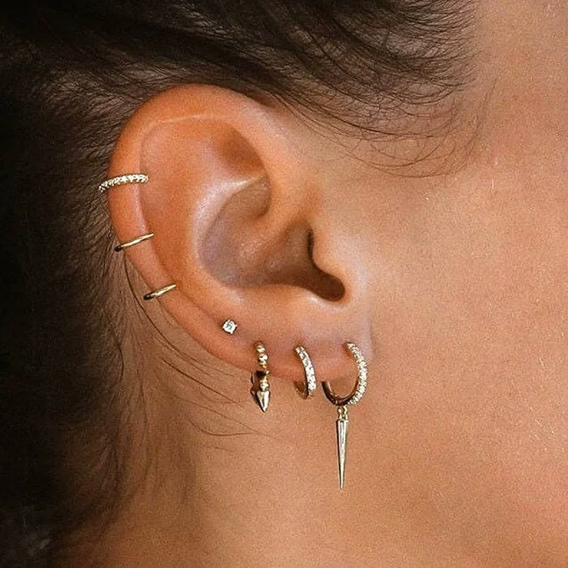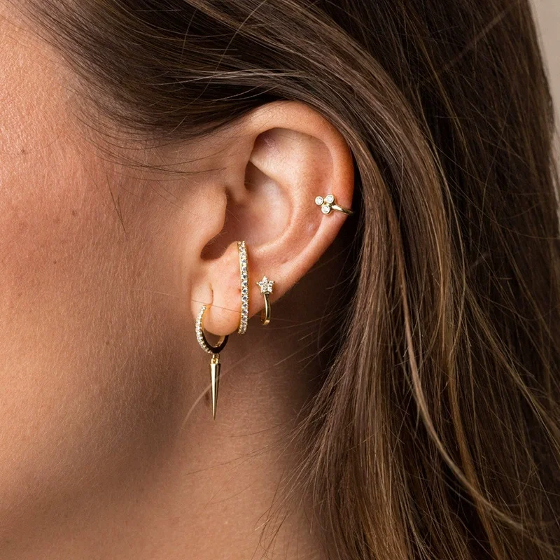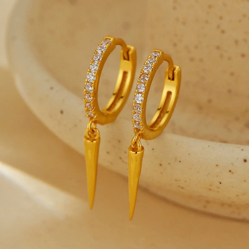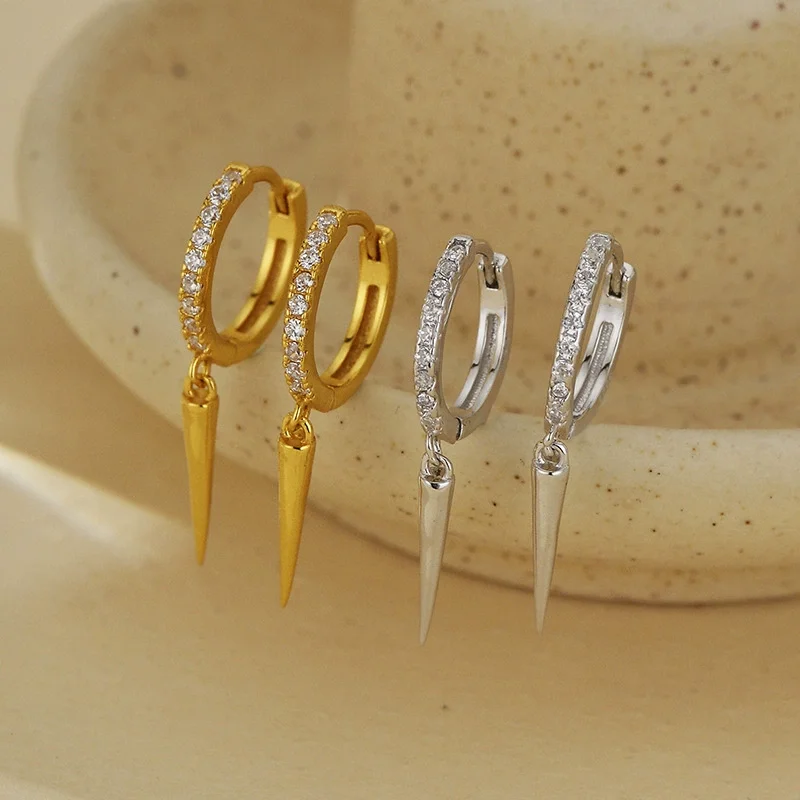 2025 Trending Product Jewelry 925 Sterling Silver Rivet Spike Earrings with Zirconia Adjustable Dangle Hoops Earrings for Women