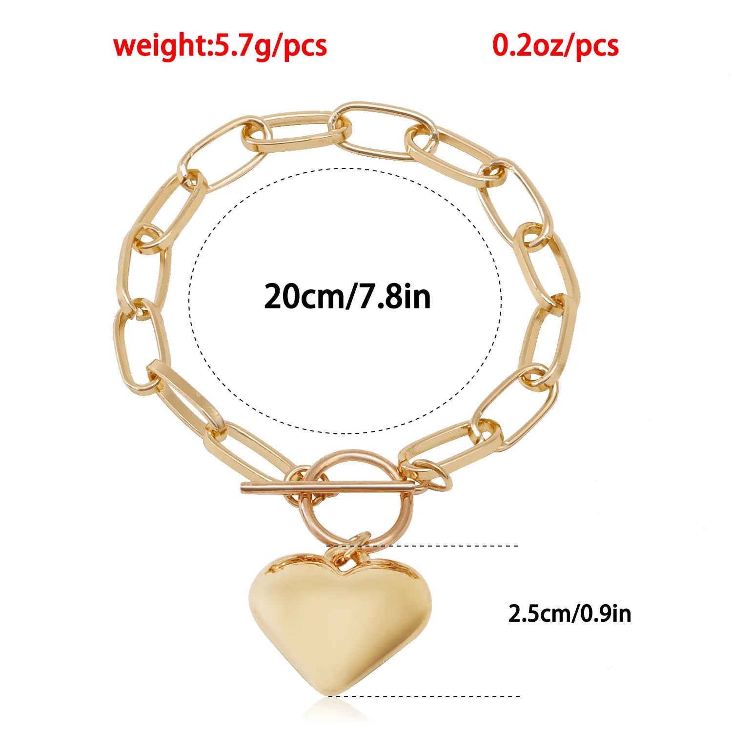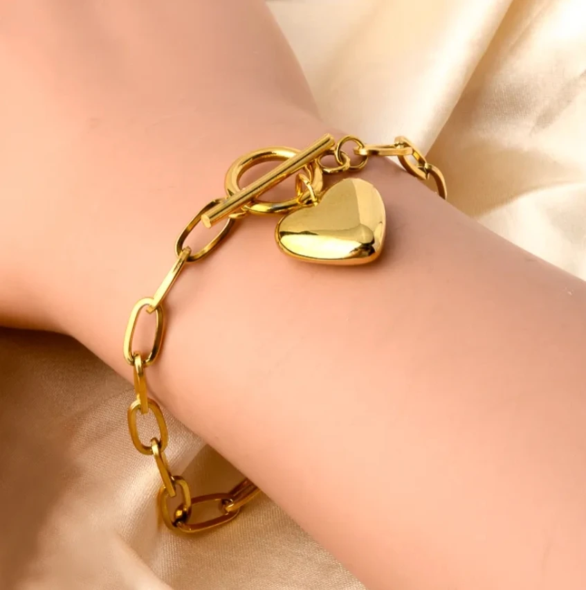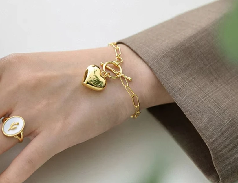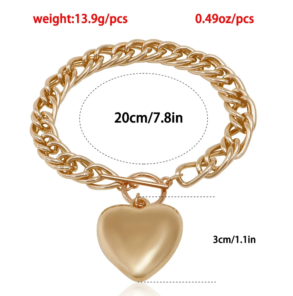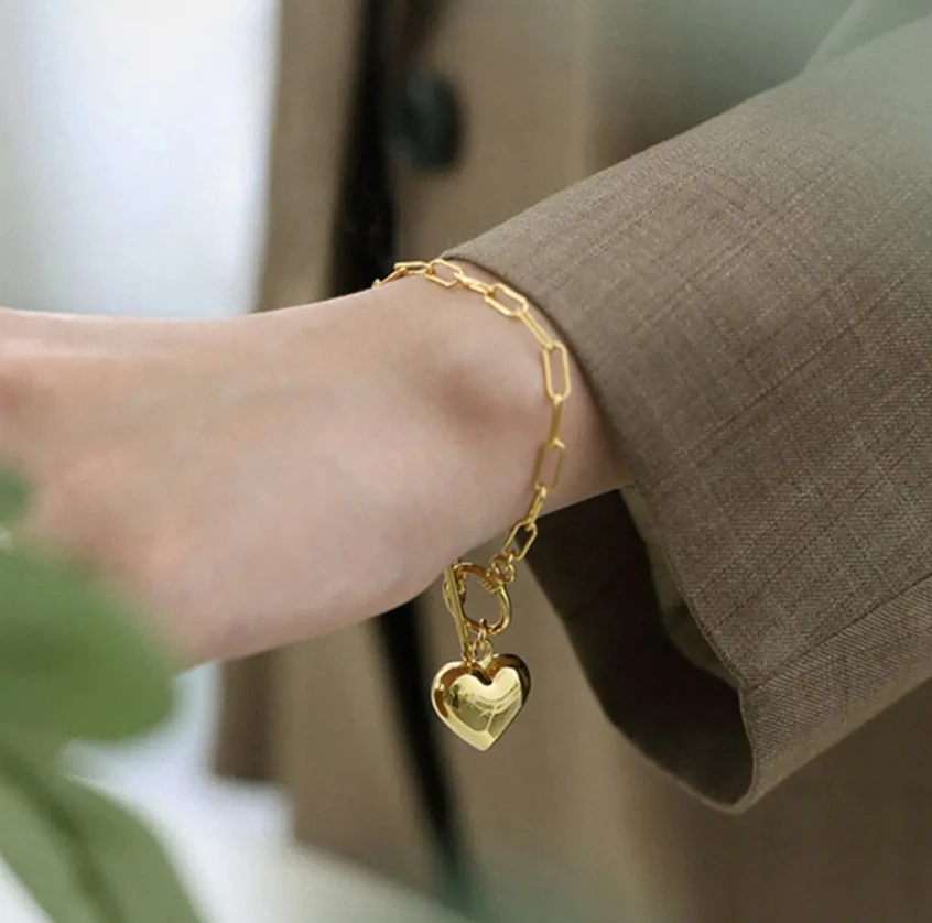 Haute Stereoscopic Love Bracelets Fashion Jewelry Simple Gold Heart Charm Bracelets Paper Clip Chain Hand Chain for Women