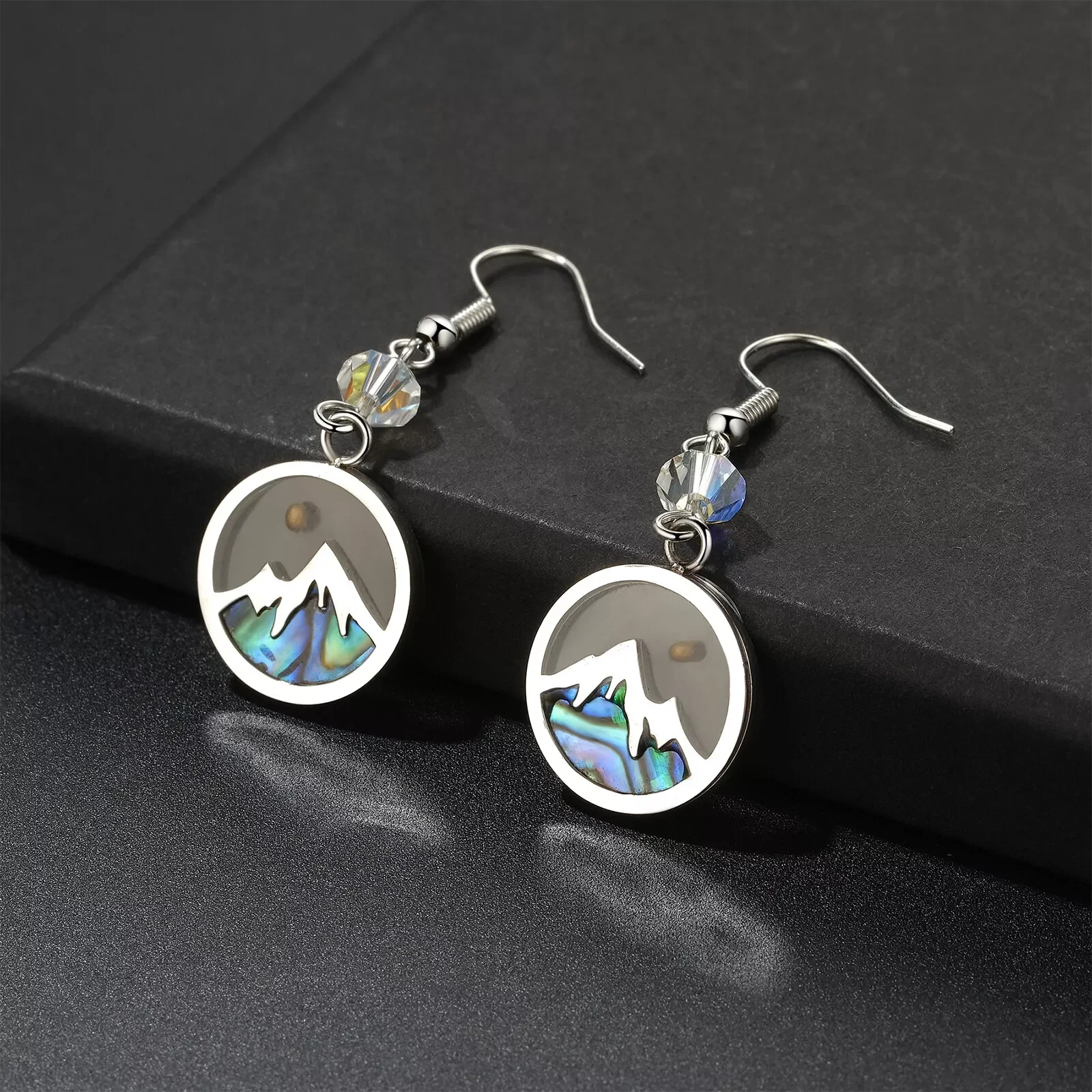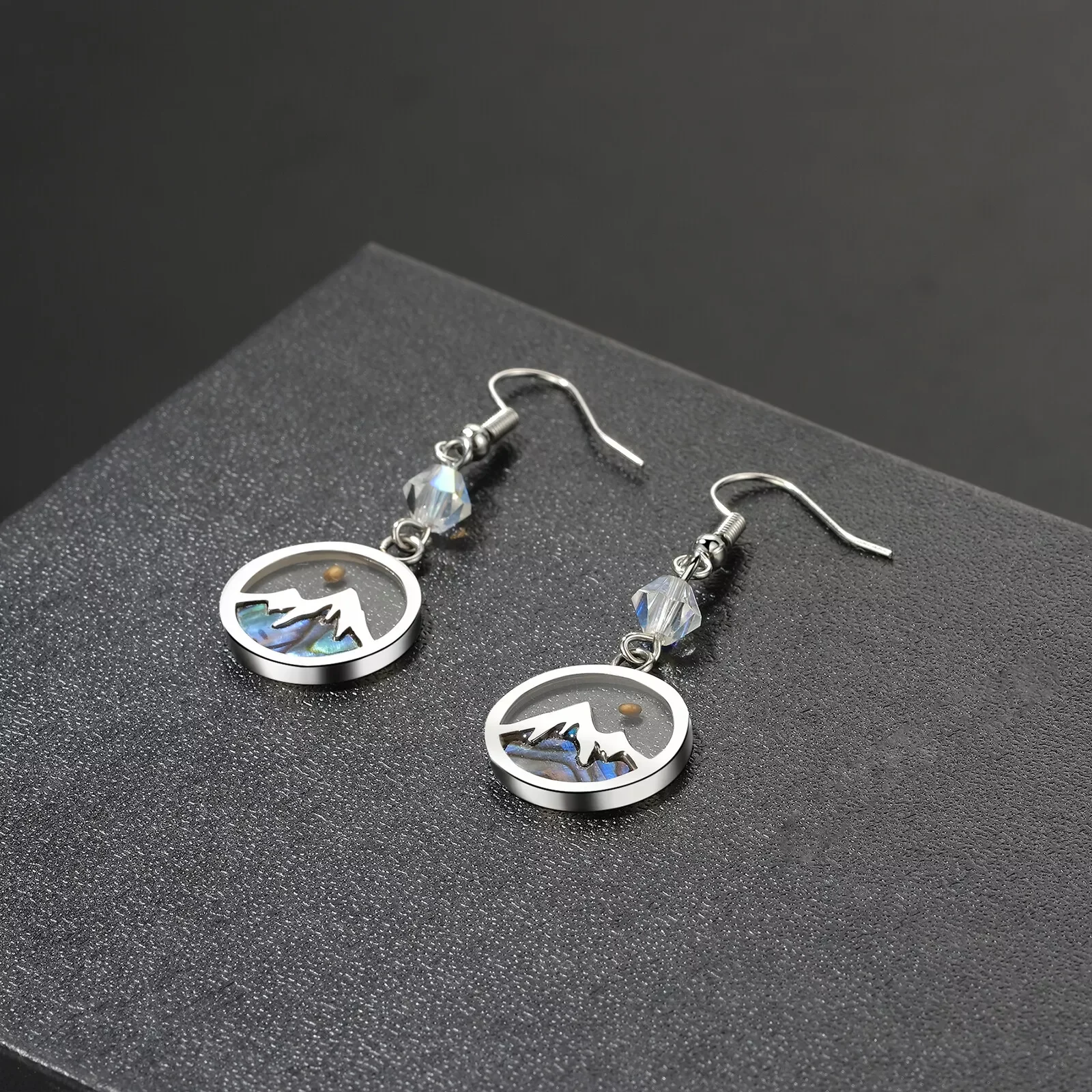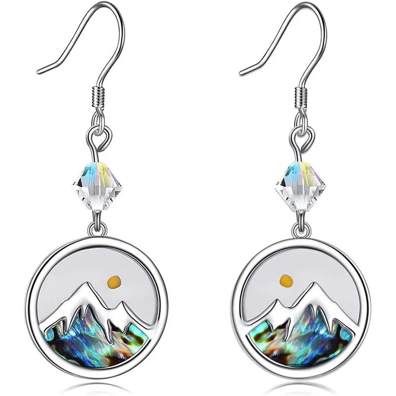 Simple Stainless Steel Elegant Mountain Sunset Silver Earrings for Women Classic Geometric Woman Earring Set Jewelry