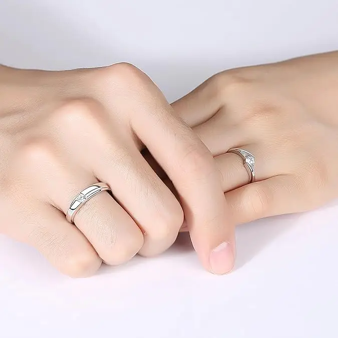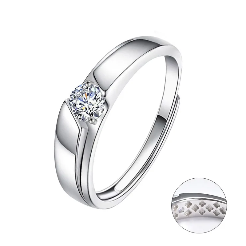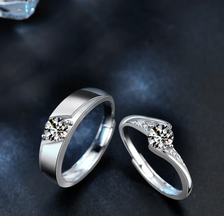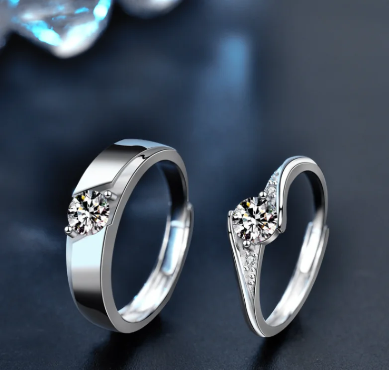 Adjustable S925 Sterling Silver Wedding Rings Couple Set Engagement Promise Moissanite Ring for Men Women