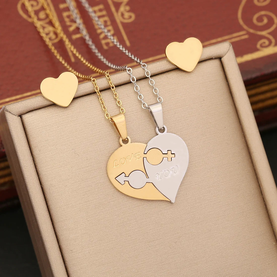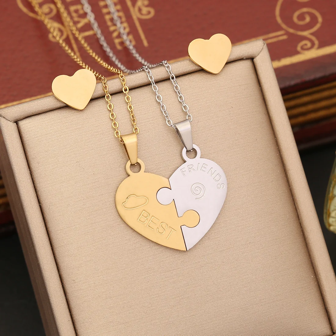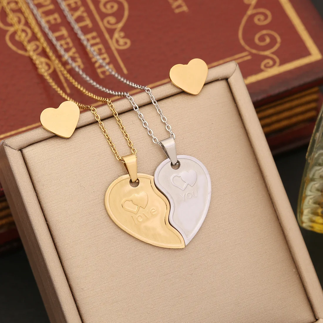 Wholesale Stainless Steel Double Heart Pendant Necklace Fashion Puzzle Pendant Necklace for Couples Girlfriend Gift