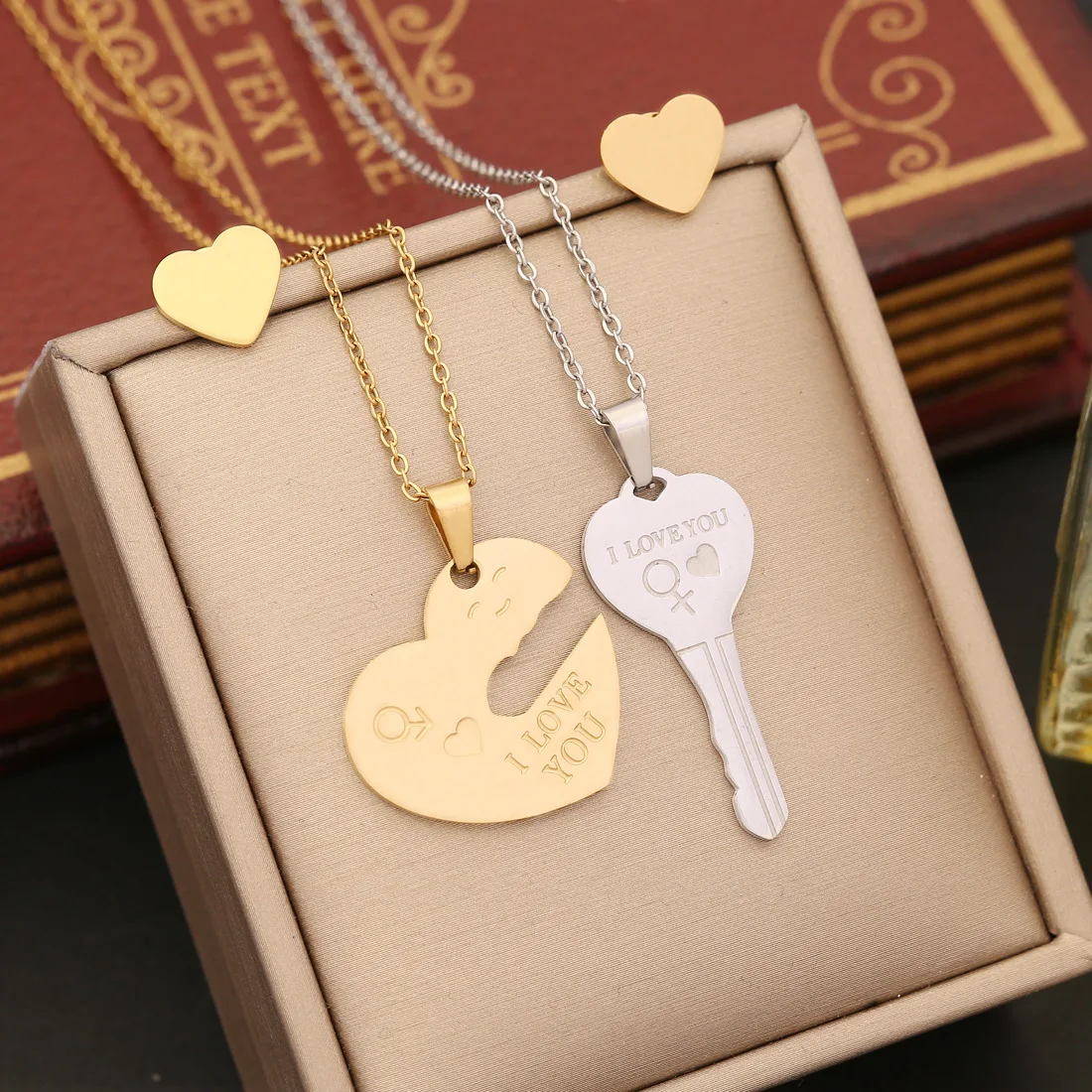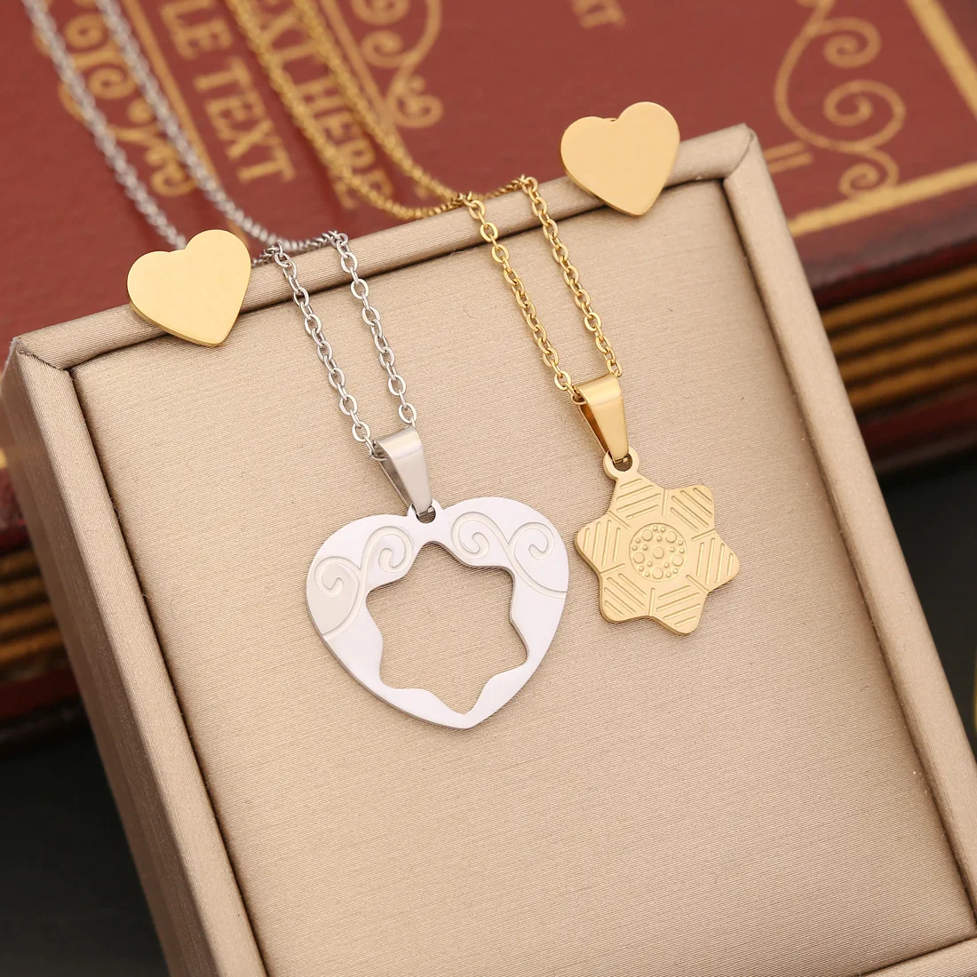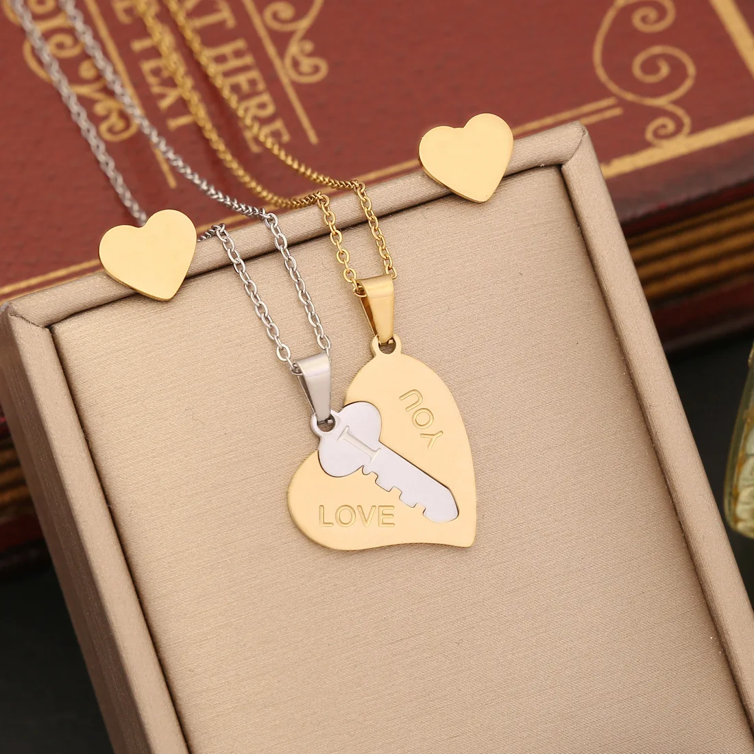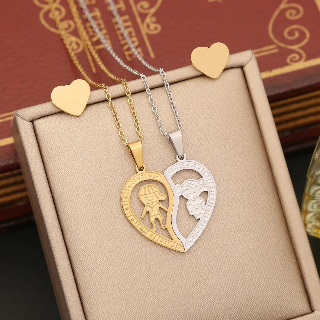Wholesale Stainless Steel Double Heart Pendant Necklace Fashion Puzzle Pendant Necklace for Couples Girlfriend Gift