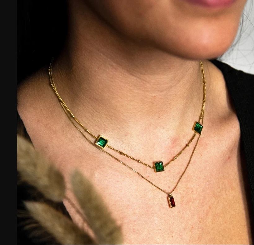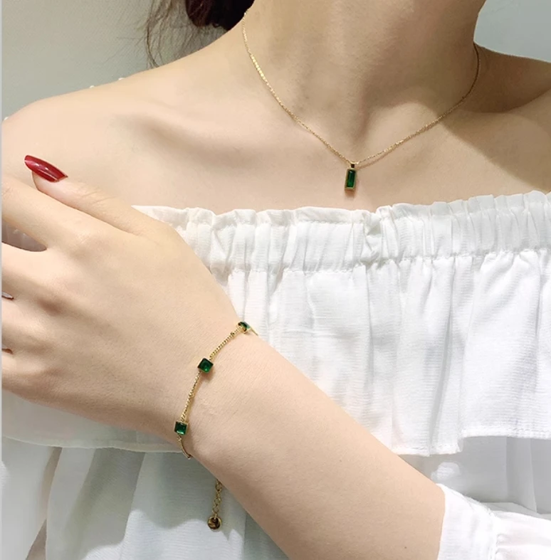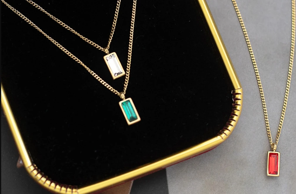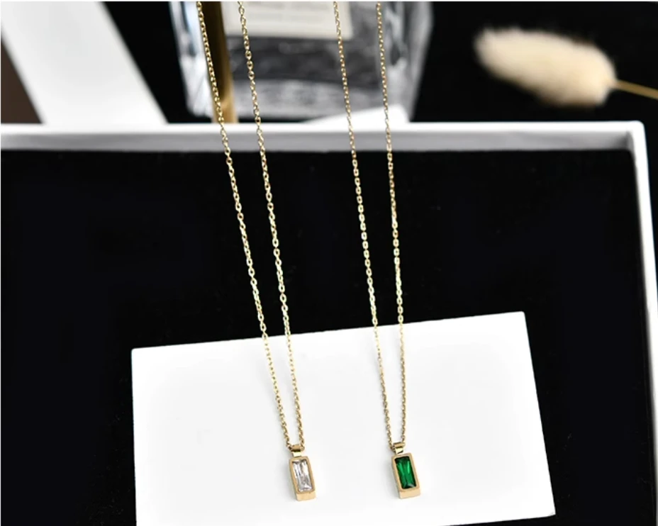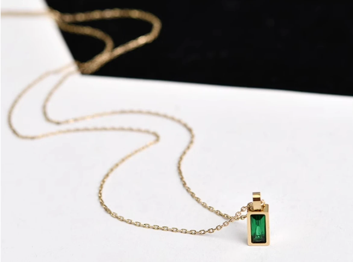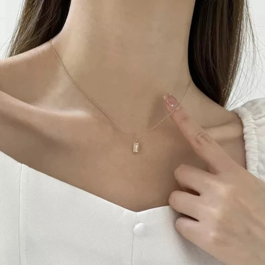 Fashion Titanium Steel Cubic Zirconia Necklaces Minimalist Rectangular Pendant With Gold Plated Necklace for Women Birthday Gift