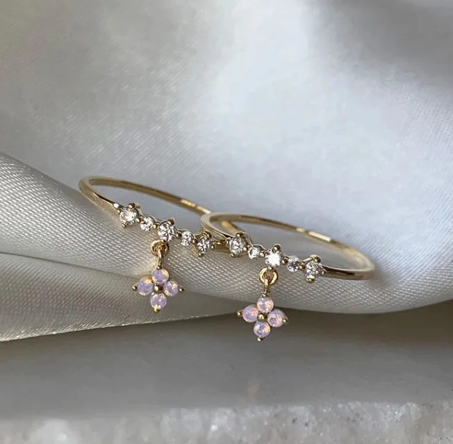Minimalist Sakura Flower Ring for Women Dainty Adjustable Cubic Zirconia Open Ring Elegant Gift for Her