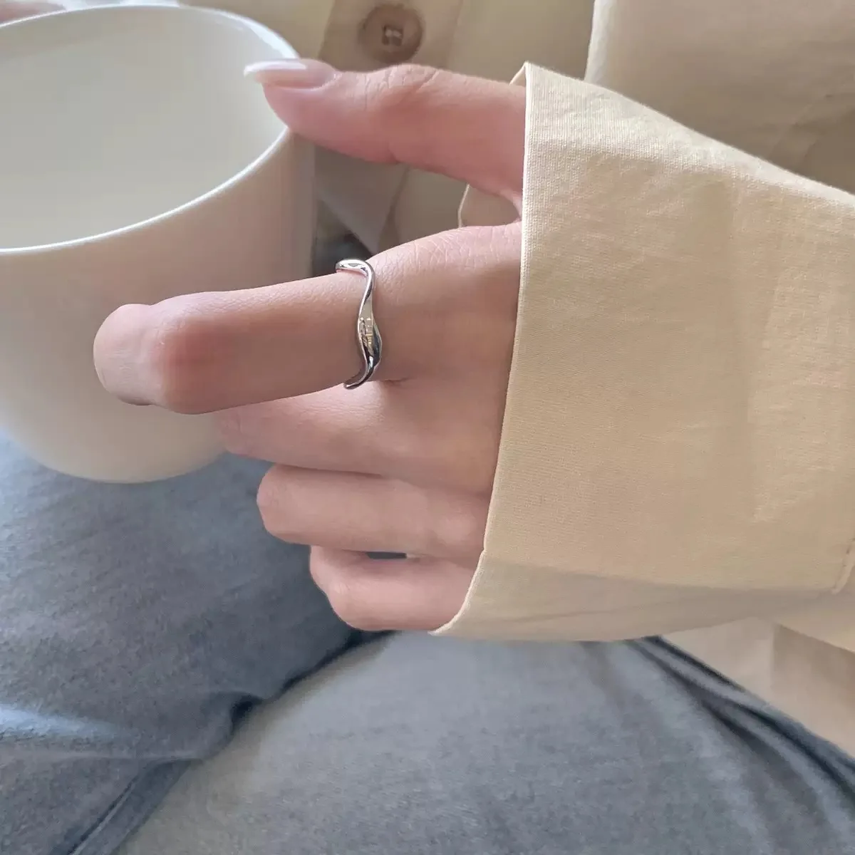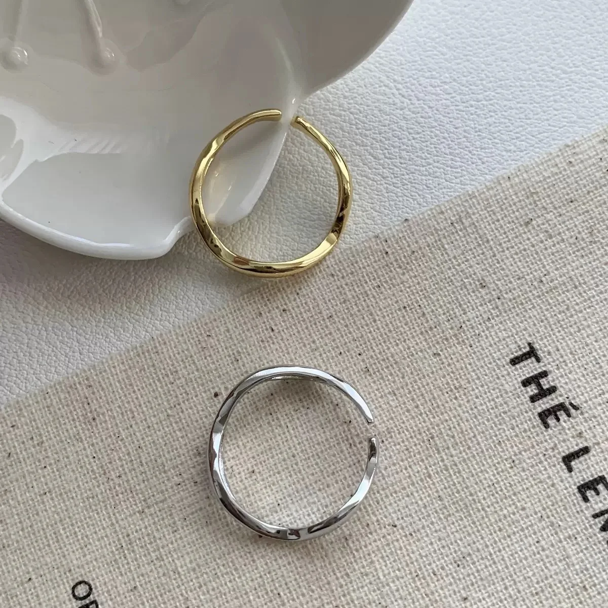 Trendy 925 Sterling Silver Adjustable Open Ring for Women 18K Gold Plated Irregular Stackable Ring Jewelry