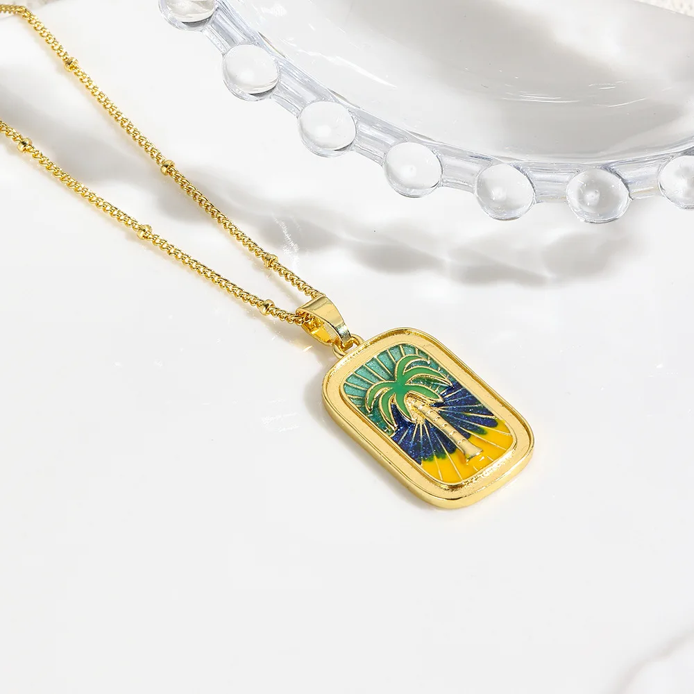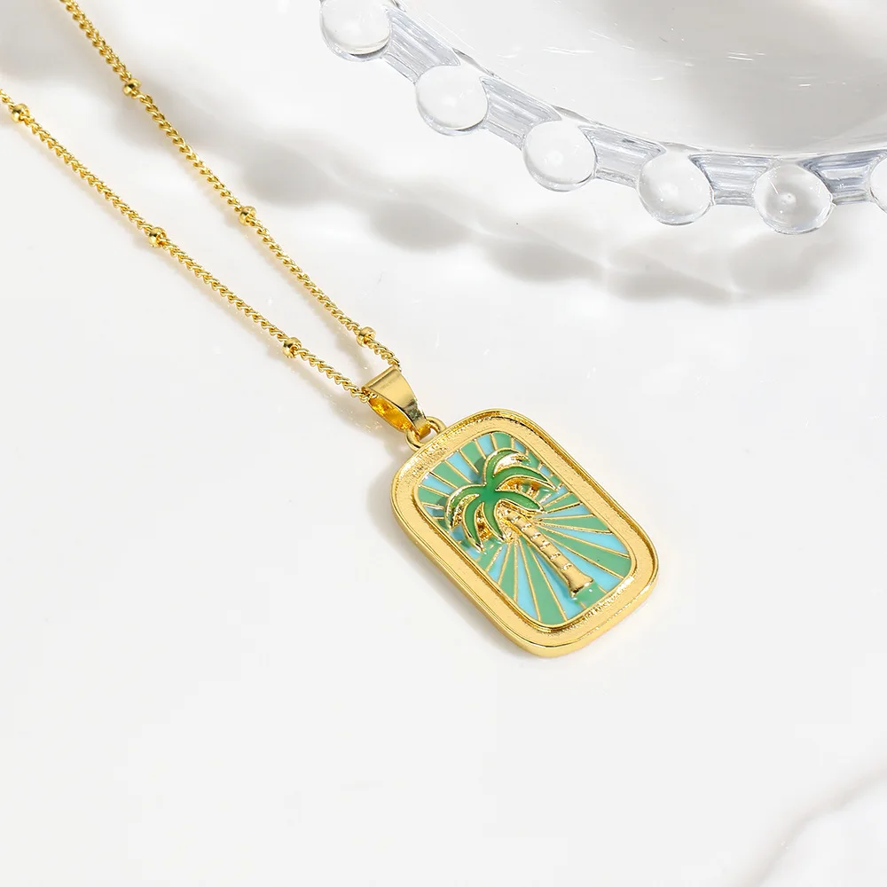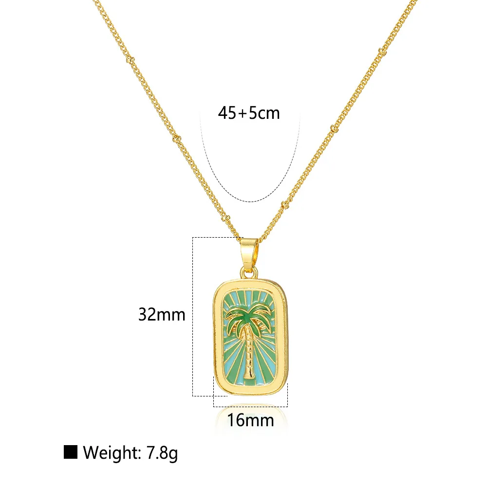 Wholesale Gold Charms Coconut Palm Tree Pendant Necklace Fashion Geometry Enamel Tarot Cards Necklace for Women