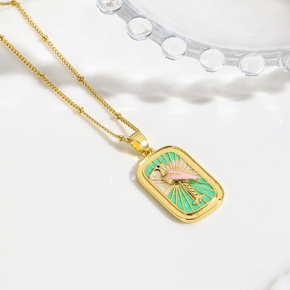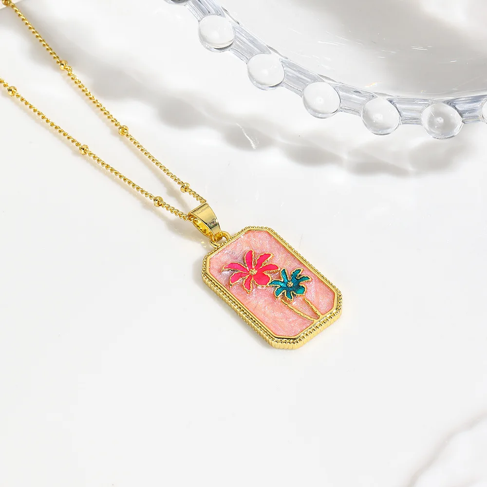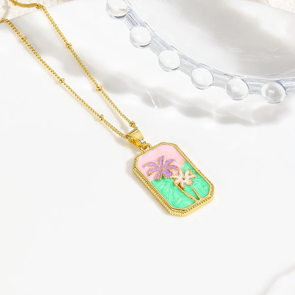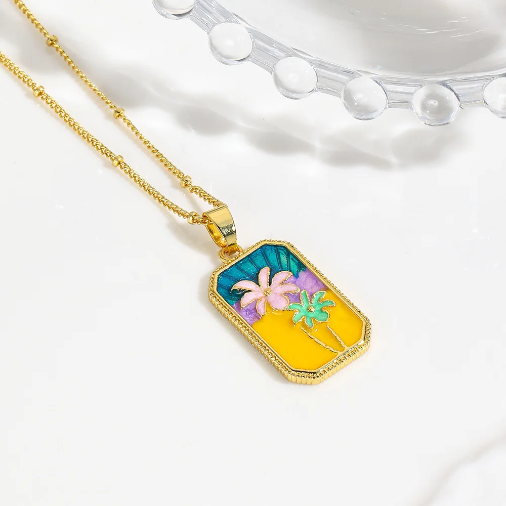 Wholesale Gold Charms Coconut Palm Tree Pendant Necklace Fashion Geometry Enamel Tarot Cards Necklace for Women