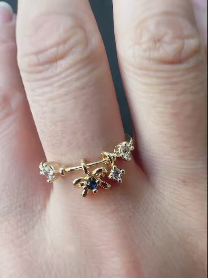 Cubic Zirconia Flat Round & Bowknot Charms open ring for women