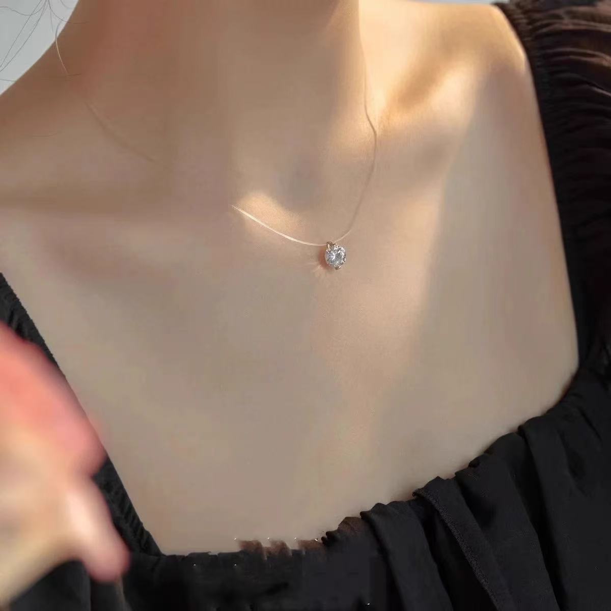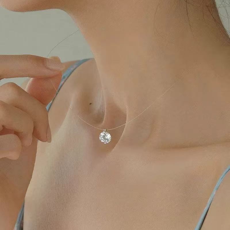 Invisible Transparent Fishing Line Moissanite Collarbone Chain Mermaid Tears Necklace